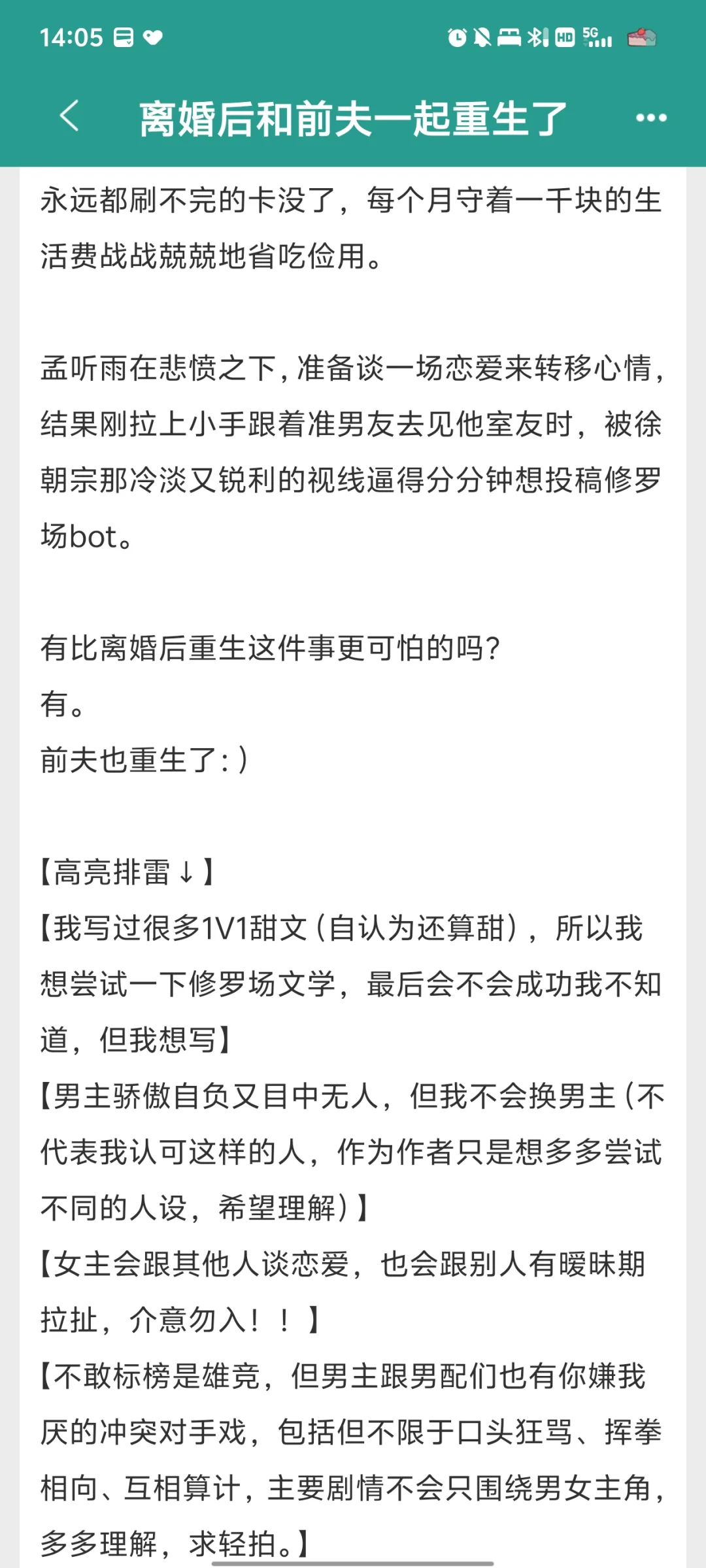 《离婚后和前夫一起重生了》by林绵绵 去年完结的文,一共118章 洒脱上进女主vs冷静隐忍男主 双重生,刺激修罗场 追妻火葬场,破镜重圆