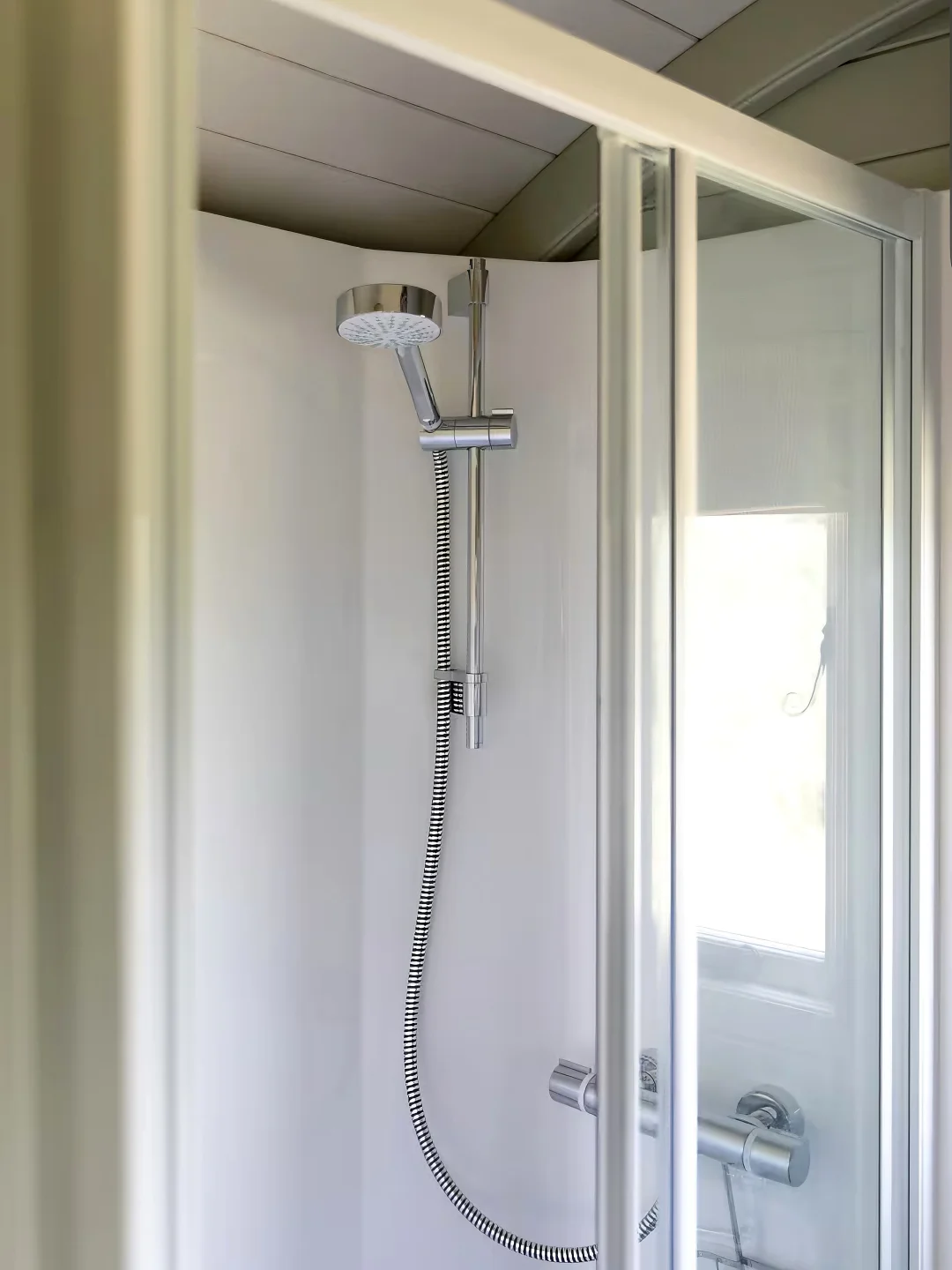 ▪️屋内有卫生间,洗脸池、还有热水淋浴和吹风机、洗发水护发素等,洗漱很方便