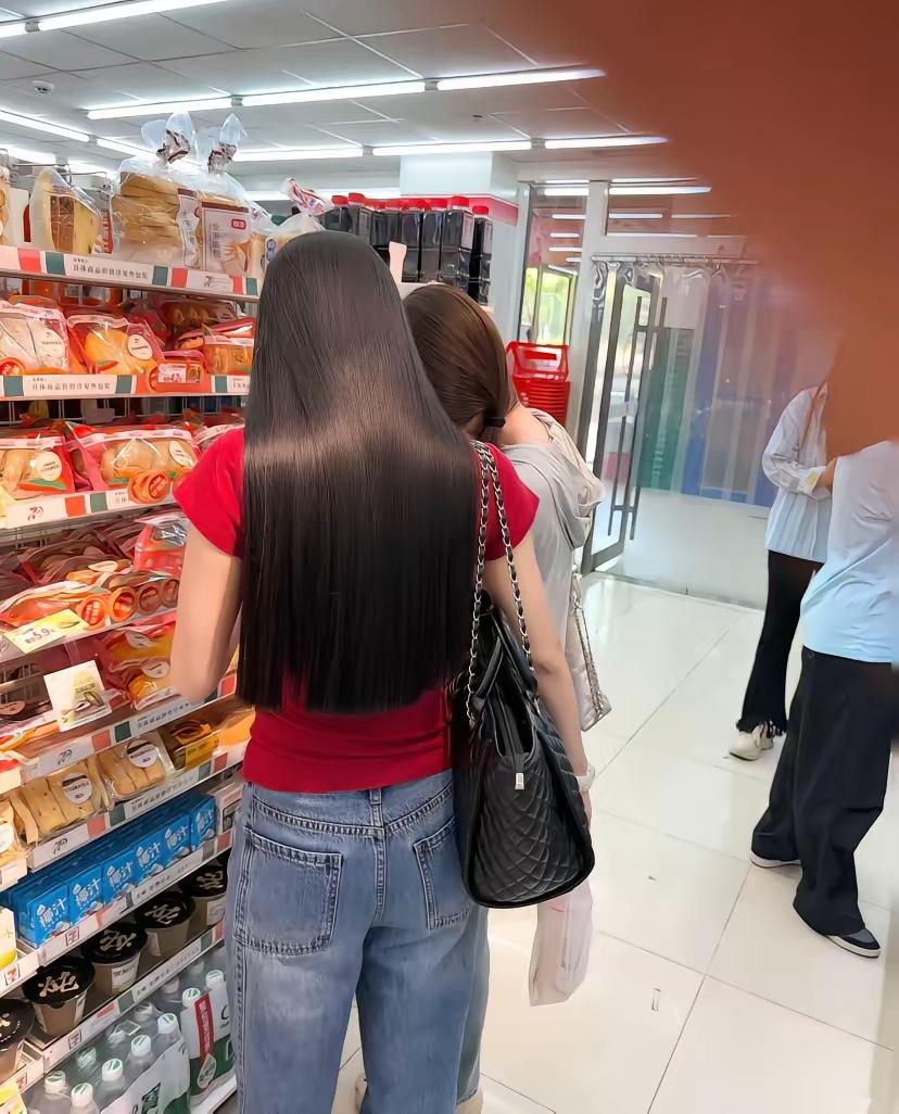 超市货架前的红衫黑长直,是烟火气里最亮眼的那缕风,连挑零食的背影都带着鲜活的松弛感~