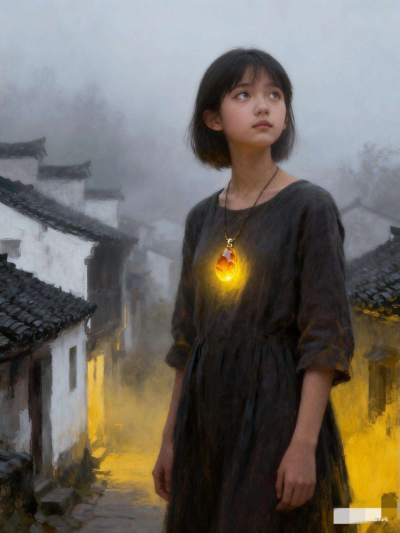 坠光破晓 迷雾是青雾镇永恒的底色,晨雾如纱缠绕着黛瓦白墙,暮雾似墨晕染着石板路的纹路,连镇上的风都带着潮湿的朦胧感。就在这片挥之不去的雾气中,总有一个身影格外醒目——那是位佩戴着黄色坠子的女生,坠子是暖融融的琥珀色,在雾色里隐约流转着微光,像揣着一小团不会熄灭的星火。 她叫灵汐,没人知道她来自何方,只记得三年前一个雾浓得化不开的清晨,她踩着露水出现在镇口。她有着一双与小镇氛围截然不同的眼睛,明亮得能穿透层层迷雾,深邃得像藏着整片星空,偶尔抬眼时,眼底会闪过一丝常人难以察觉的坚毅。灵汐总是独来独往,清晨去后山采摘带着晨露的草药,午后在老槐树底下静静坐着,指尖轻轻摩挲着黄色坠子,傍晚则沿着河边小路缓步前行,身影被雾霭拉得很长。镇上的人对她好奇,却从不敢过多打探,只觉得她身上有种莫名的沉静力量,像迷雾中稳稳矗立的灯塔。 变故发生在一个没有月亮的深夜。原本还算平静的雾气突然变得浓稠发黑,带着刺骨的寒意席卷全镇。凄厉的嘶吼声从黑暗中传来,一群面目狰狞的幽灵冲破雾障,它们浑身裹着黑气,利爪獠牙在夜色中闪着寒光,所到之处,门窗吱呀作响,草木瞬间枯萎。镇上的居民吓得蜷缩在家中,哭喊声、呼救声与幽灵的嘶吼交织在一起,绝望像潮水般淹没了整个青雾镇。 就在这时,灵汐站了出来。她没有丝毫畏惧,缓步走到镇中心的广场上,周身的雾气似乎都为她退开几分。她抬起手,紧紧握住胸前的黄色坠子,嘴唇轻启,念出一串古老而晦涩的咒语。话音刚落,黄色坠子骤然爆发出耀眼的光芒,那光芒不像阳光那般炽热,却带着温暖而强大的力量,如同一把锋利的光剑,直直刺破浓稠的黑暗。 光芒所及之处,幽灵们发出痛苦的哀嚎,黑气瞬间消散,一个个幽灵在光中化为虚无。灵汐站在光的中心,身姿挺拔,眼神坚定,指尖的坠子持续释放着微光,将黑暗一点点驱逐。镇上的居民纷纷探出头,看着那个被光芒笼罩的身影,心中的恐惧渐渐被震撼取代。 战斗持续了整整一夜,当天边泛起鱼肚白时,最后一只幽灵在光芒中消散,浓稠的黑雾也渐渐褪去,青雾镇重新恢复了往日的宁静,只是空气里还残留着淡淡的暖意。灵汐收起咒语,黄色坠子的光芒缓缓减弱,重新变回那枚温润的琥珀色挂坠。 后来,镇上的老人才从祖辈留下的手记中得知,那黄色坠子是上古流传下来的镇灵玉,蕴含着净化黑暗、守护生灵的强大魔力,而灵汐,正是被选中的守护者,肩负着守护青雾镇的使命。她独来独往的身影,其实是在默默巡视小镇的每一个角落,防备着黑暗力量的侵袭。 如今的青雾镇,雾气依旧萦绕,但再也没有过黑暗的侵袭。灵汐依然像往常一样,穿梭在小镇的街巷中,胸前的黄色坠子在阳光下闪着柔和的光。那枚坠子,早已成为小镇居民心中希望与勇气的象征。每当有人遇到困难,只要看到灵汐和她胸前的微光,就会想起那个破晓的夜晚,想起那刺破黑暗的光芒,心中便会涌起无尽的信心——只要希望不灭,勇气常在,一切困境终将过去。而灵汐与她的黄色坠子,也将继续守护着这片迷雾中的小镇,让温暖与安宁永远留存。雾气朦胧感