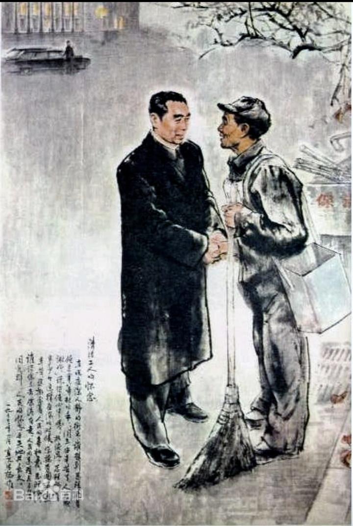 这是上小学时课文里的一幅插图,周总理亲切地同清洁工人握手。记忆中学过很多有关周总理的课文,起初学过《一夜的工作》;后来学过《一件珍贵的衬衫》,周总理给一个普通工人送衬衫,让人感觉好温暖;再后来,学到《十里长街送总理》,全班同学都哽咽了,甚至有部分女孩红着眼,放声大哭了起来。 如今,我们再也看不到这样亲切、平易近人的总理了,每次看着这些图片我都会忍不住失态流泪。周总理,人民都爱您!