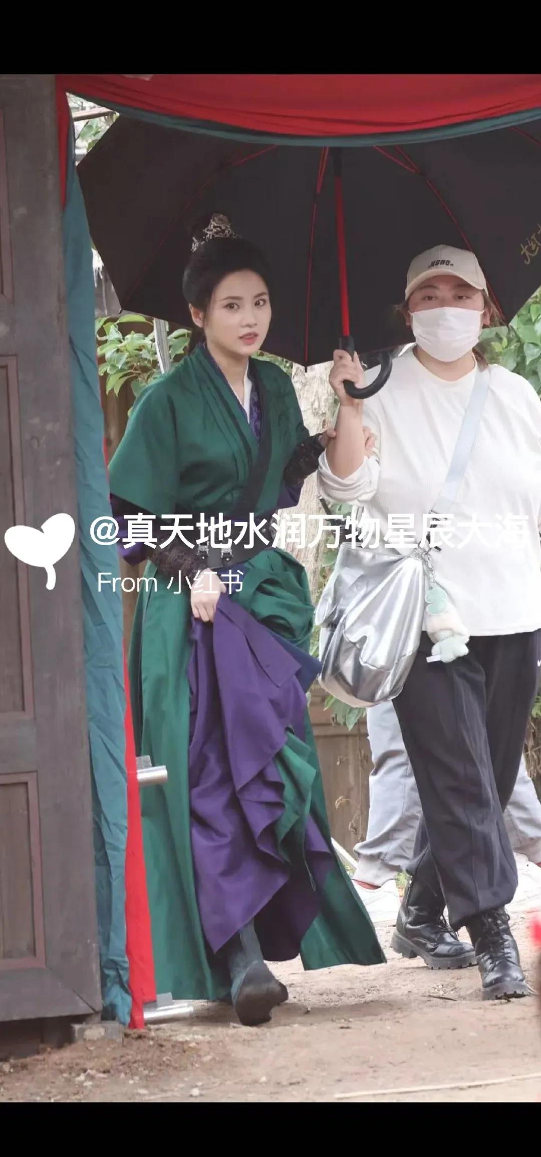 慧雯的青色剧服,和当年《琅琊榜之风起长林》发布会这一套一样颜色,冷白皮美女张慧雯