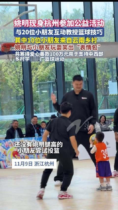 姚明筹集百万善款 11月9日,浙江杭州。姚明与20位小朋友进行公益篮球课互动。其中,10位小朋友分别来自云南孟连县的10所小学。据悉本次公益活动,共筹得爱心善款100万元,将全额捐赠至姚基金,用于支持中西部乡村学校推广篮球运动。
