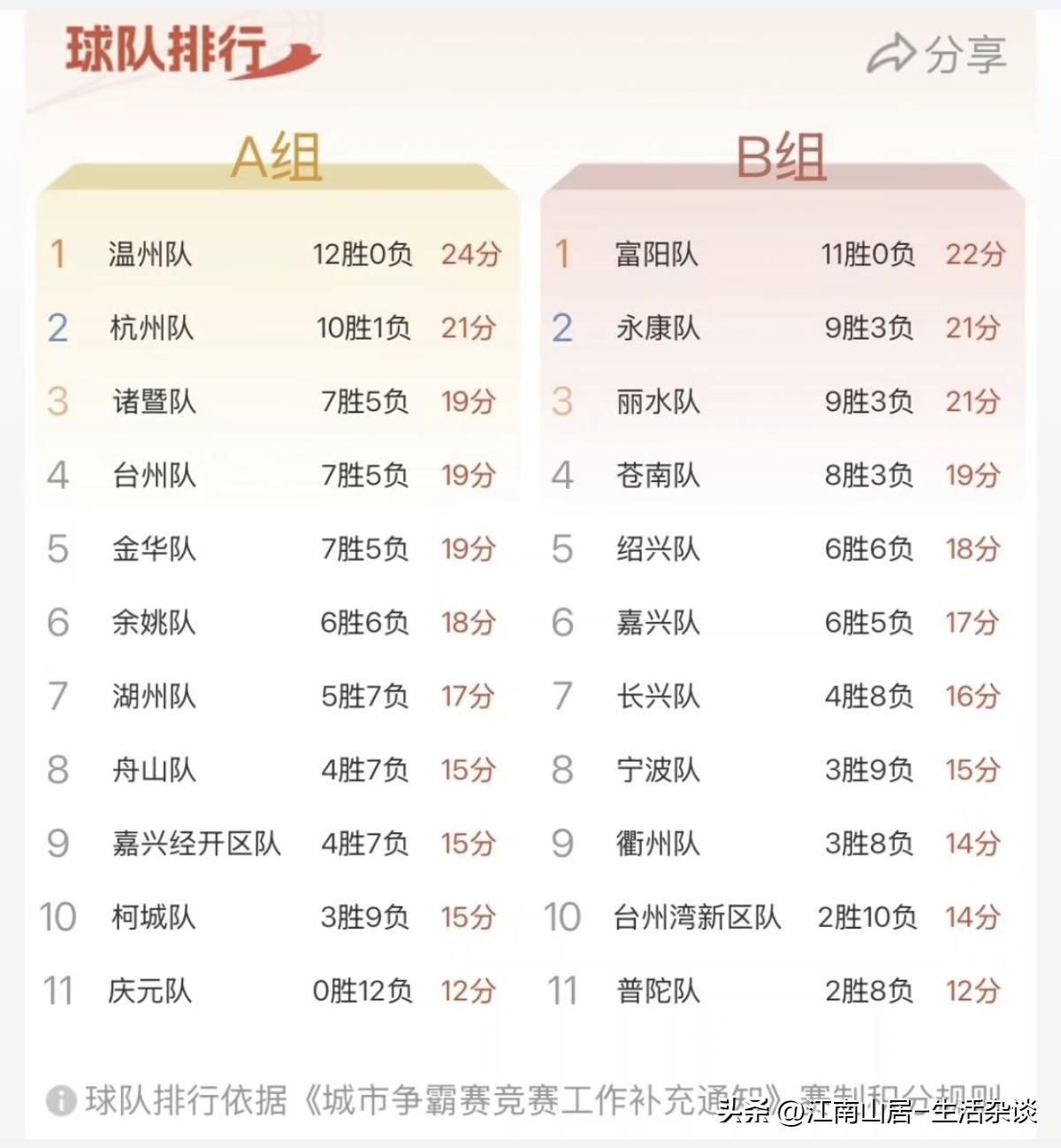 浙BA赛程已经到了第十二轮,目前温州队和富阳队,依旧领跑小组赛。但是a组,第三名和第四名的竞争非常的激烈,这也关乎小组赛出线。从目前来看,诸暨队、台州队、金华队、余姚队、湖洲队等,都有机会站上第三名和第四名。所以,接下来的赛事竞争会非常激烈。至于温州队和杭州队,估计是能够锁定小组赛出线了。b组方面,富阳队应该是锁定小组赛出线了。