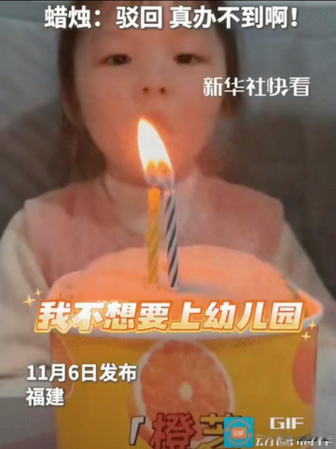 这女孩的可爱都被新华社发现了! 小女孩过生日许愿说不想上幼儿园,吹完蜡烛没一会儿,蜡烛居然自己又燃起来了,这场面又搞笑又让人有点心疼~ 其实好多小朋友刚上幼儿园那会儿,都有过不想去的小情绪呀。 要么是还没适应陌生环境,要么是在园里遇到了点小麻烦,说不出来就只能用“不想去”表达。 这小家伙懵懵懂懂的,看见蜡烛复燃还以为能再许一次愿,那模样是真可爱,但想想她不想上幼儿园的小小心思,又有点心疼。 孩子的愿望多纯粹呀,不喜欢的事就直白说出来,一点不拐弯。 爸妈希望孩子好好适应集体、好好学习没啥错,但也得重视孩子的小情绪。 多坐下来跟她聊聊,问问在幼儿园玩了啥、有没有不开心,慢慢帮她解决问题,她才能越来越喜欢去。 不过话说回来,蜡烛吹完又点燃,也能看出质量不太行。 商家还是得把好品质关,不然不仅影响使用体验,还可能有安全隐患呀~ 读者们,你们觉得呢?有不同看法的,可以在评论区一起聊聊。