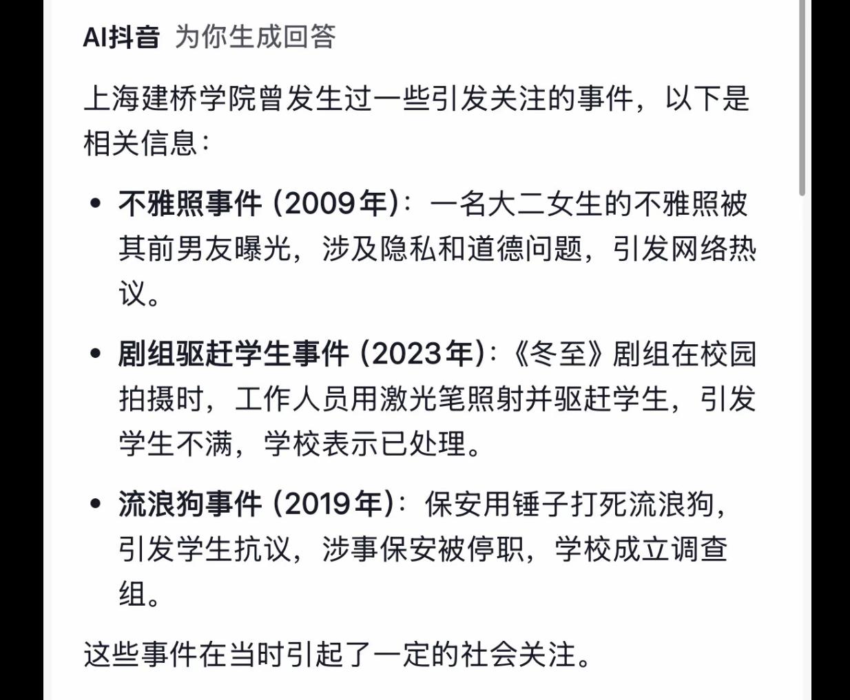 上海建桥根本不经扒 2000年成立的民办全日制普通本科 现有在校生约2.4万人,教职工1200余人 普通本科一年学费58000 住宿费4800和7800 教材费1000 补考费80一学分 热水50块钱一吨 也就是说上这学校的都不差钱 所以上4天课收费5000多也许真不多 还坑学生报名费,每人1500… 还有同学练轻功,晾衣服从十几楼下来的 还有保安打死流浪狗 你觉得学校怎么样?