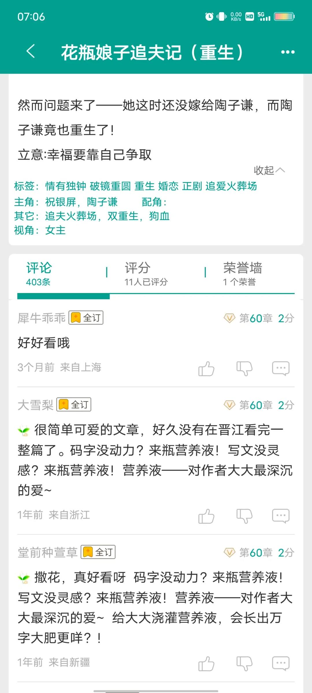 《花瓶娘子追夫记》by伏寒 21年完结的文,只有60章,短小精悍 重生追夫火葬场,虚荣拜金女重夺清冷男欢心