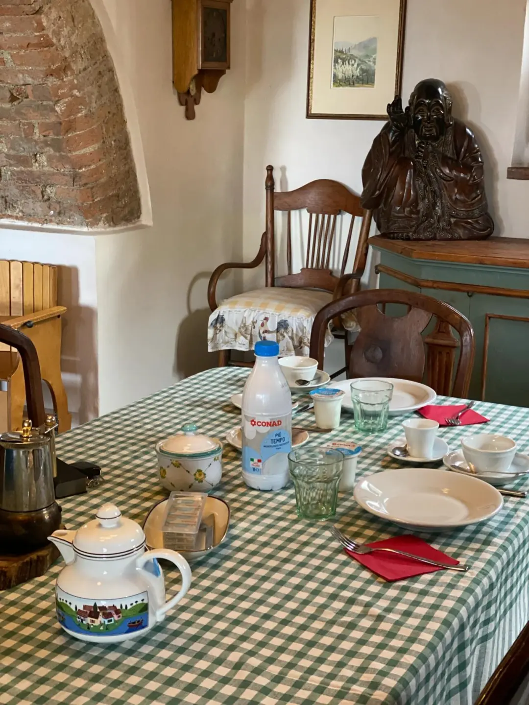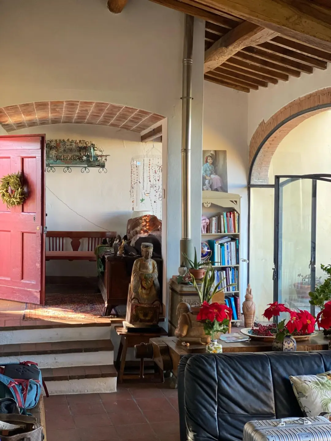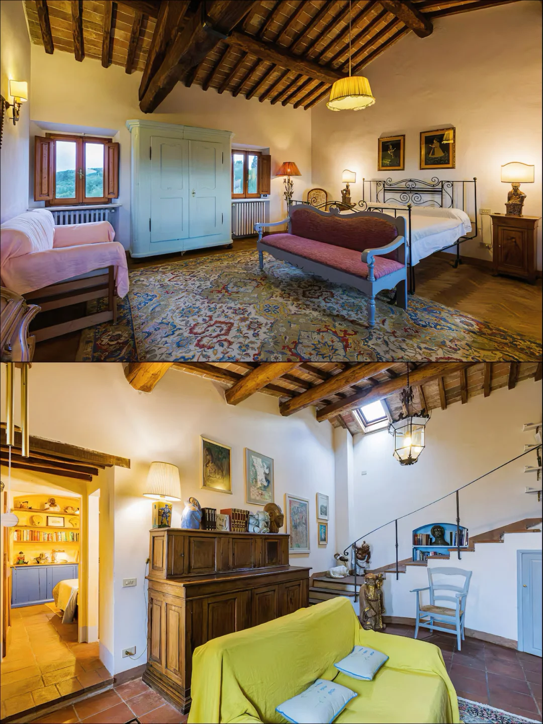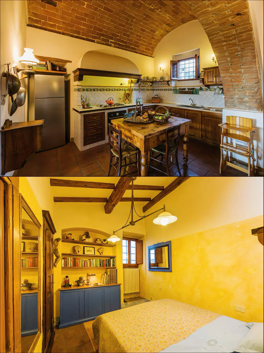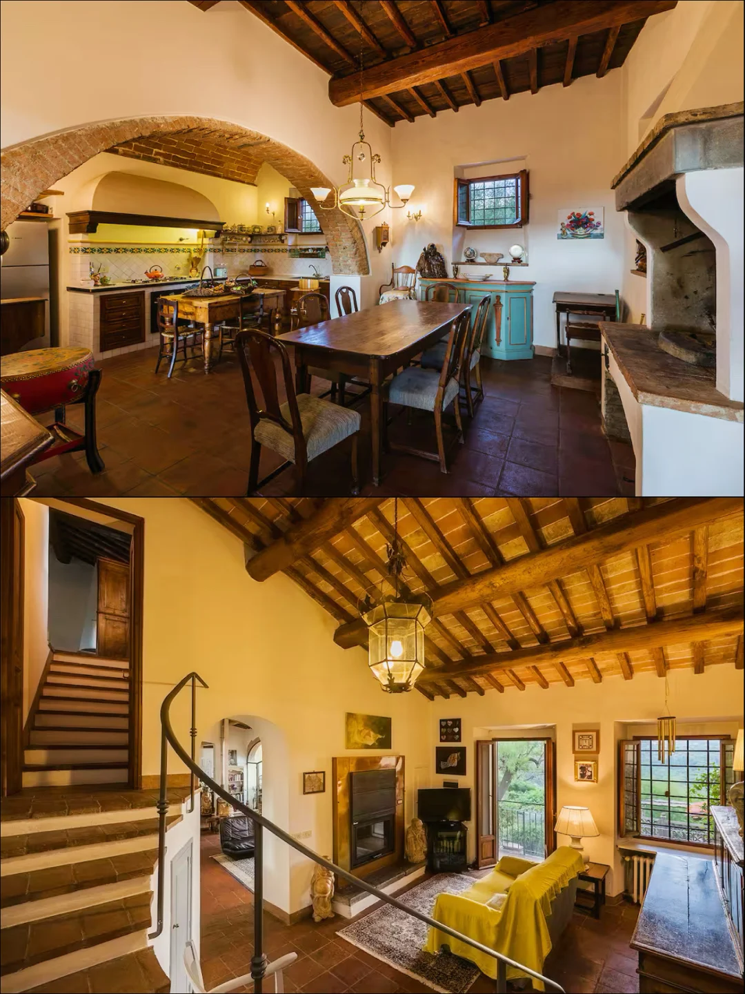 民宿最初是一个15世纪小修道院的一部,住进这个老房子,仿佛住进一场文艺复兴的旧梦,房子保留了老农舍的粗粝感——厚实的石墙、木梁天花板、壁炉,但该有的现代舒适一样不少。Wi-Fi稳定,床垫舒服,浴室宽敞,住起来只有沉浸的放松的感觉。