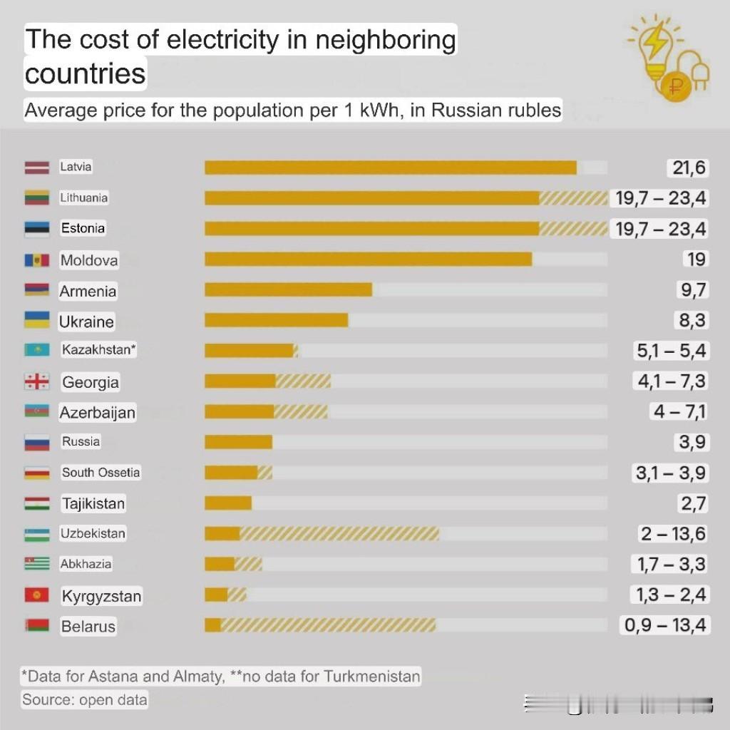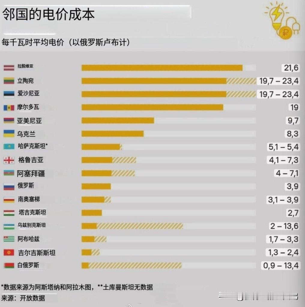俄罗斯切断乌克兰的电力供应,是为了替乌克兰人省钱?。 毕竟,在这个欧洲最“独立”的国家,用电的话,电费那是非常昂贵的。 “俄卫星通讯社海外版”发布了一份关于原苏联各加盟共和国“欧洲一体化成果”的汇总表。 经常看到,苏联解体后,加入欧盟的原苏联各加盟共和国日子过得比跟着俄罗斯混时好多了的论调。 但事实证明,这些加入欧盟的原苏联加盟共和国在入欧后的“自由与民主”是需要付出高昂代价的。 #俄乌冲突##俄乌激战红军城#