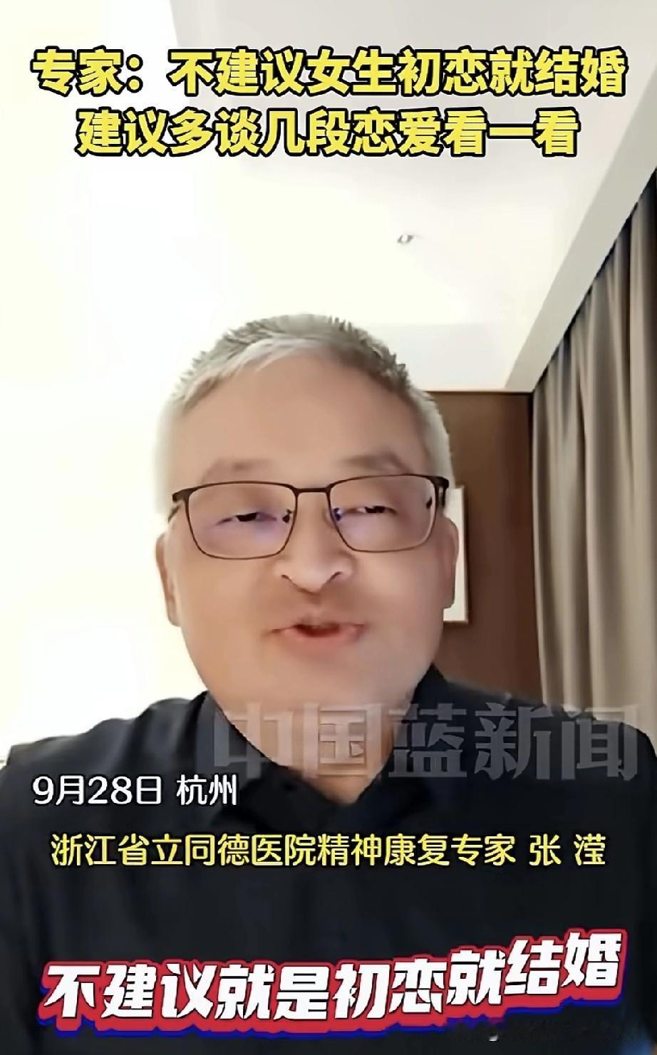 专家不建议女生初恋就步入婚姻殿堂,建议多谈几段恋爱,多去了解不同的人。毕竟人性复杂,家庭情况也复杂。我们可能会喜欢上某个男生,但他的家庭状况也许并不理想。这个男生或许并非渣男,可他的父亲说不定就是。 女生多谈几次恋爱,倘若你无法接受抽烟的人,那下一任就找不抽烟的;要是你讨厌爱打游戏的,下一任就绝不找打游戏的,当然,要以自身安全为前提。 结婚要找能让自己心安的人,两人相处起来舒服自在,在一起时能让你心神安宁。选择那个不会让你内耗、情绪稳定、专一且把你视为唯一,能与你白头偕老一生的另一半。最重要的是对方人品要好,当你内心感到安宁、相处觉得舒服,那就说明他/她就是你的正缘。