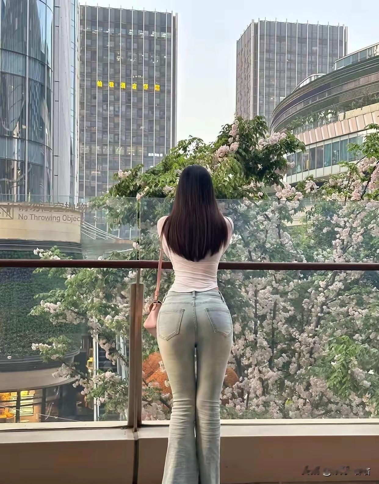城市绿洲中的少女,背对镜头,眺望繁华。