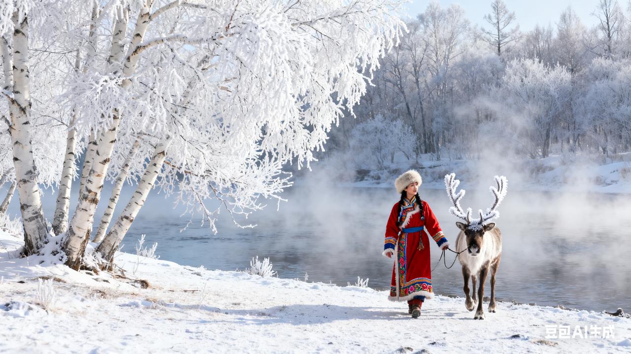 这个冬天开呼伦贝尔玩 晨曦中的呼伦贝尔大草原,被白雪覆盖的草原一望无际,远处的蒙古包顶覆盖着积雪,牧民牵着马匹走过,马蹄踏碎薄冰发出清脆声响。 根河湿地雾凇景观,白桦树枝挂满晶莹雾凇,河面雾气缭绕,穿民族服饰的鄂温克族姑娘牵着驯鹿从雾中走来,鹿角上凝结霜花。 游客在天然冰场上滑冰,冰面倒映着蓝天白云和雪山,远处火山地貌的岩石被白雪勾勒出黑色轮廓。 室韦俄罗斯族木刻楞房屋,原木墙壁堆满积雪,屋檐下垂着冰锥,主人在门口挂红灯笼,屋内透出暖黄色灯光飘出面包香气。