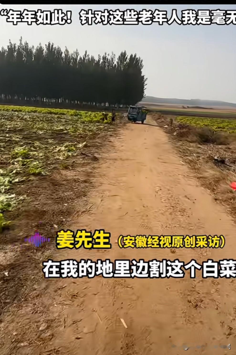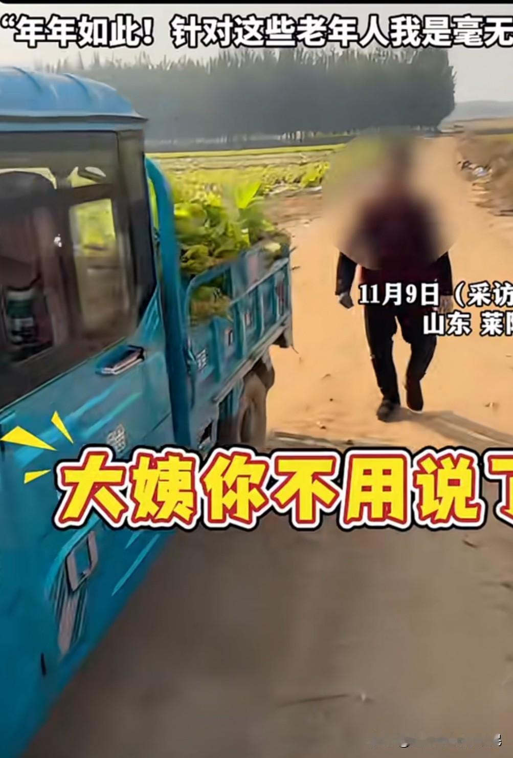 山东莱阳,80岁大爷大妈骑三轮偷种植户白菜🥬,种植户制止她,她还倚老卖老,并且已经不是一次两次的骑三轮偷白菜,是很多次。去年也是偷菜农的白菜,今年菜农损失惨重,她还一而再,再而三的偷。 菜农说远远的就看到他俩拿着菜刀要砍白菜,还是认识的人,他们是一个团伙,大概有20辆三轮车,以捡菜的名义趁机偷菜。因为菜地长200米,即使有人看着,他们也会在菜地的另一头明着偷菜。上半年种土豆就被这些团伙偷了10吨左右,他们骑着三轮,一偷就是一车。 报警,因为他们年龄大,警察也是批评教育为主,毫无办法。