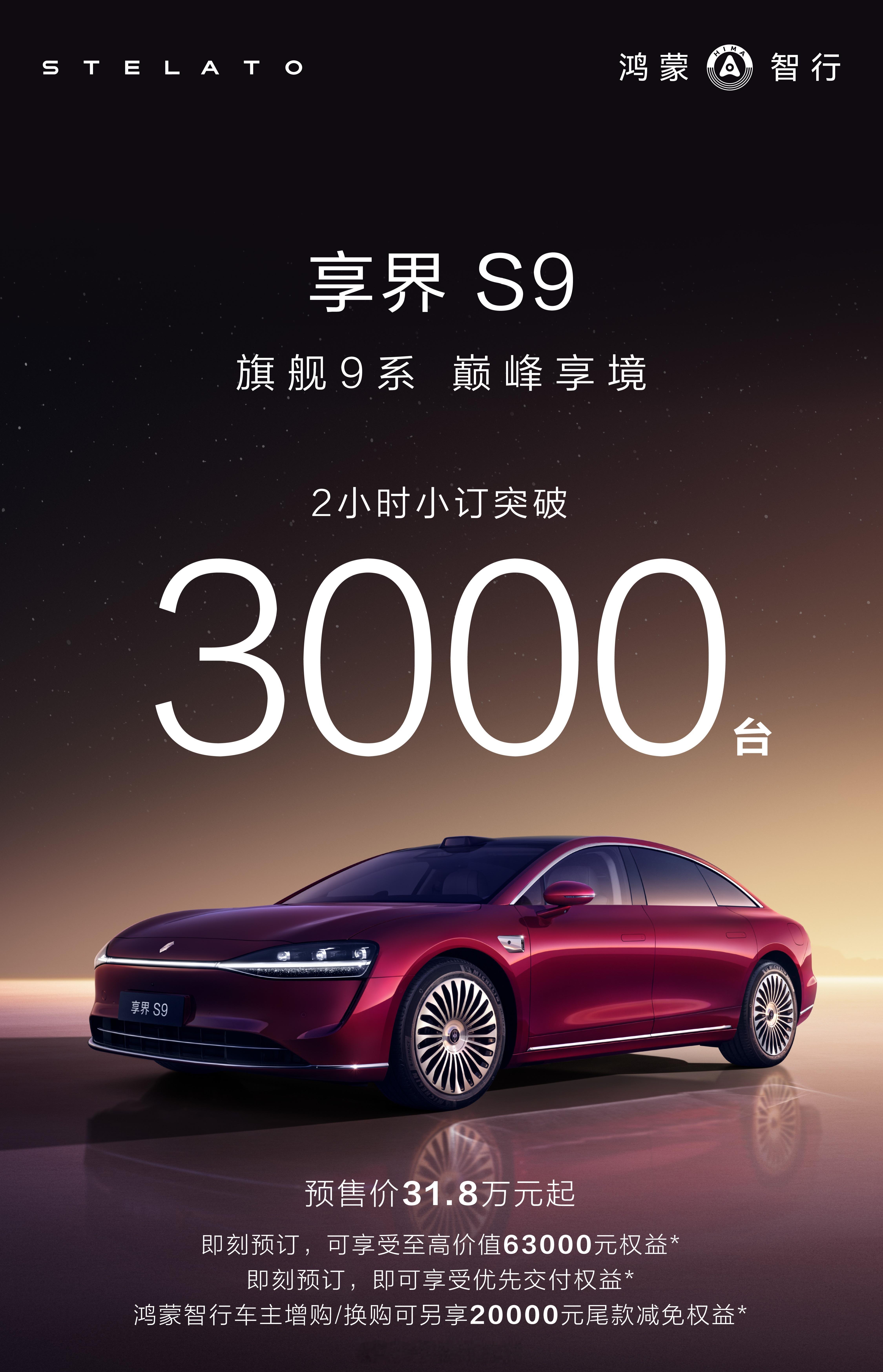不错不错呀,鸿蒙智行2025收官重磅车型享界s9 预订2小时小订突破3000台!