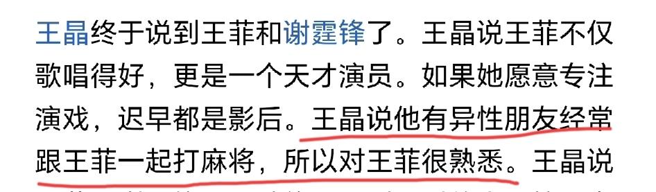 您跟王菲熟悉吗? 我有个异性朋友经常跟王菲打麻将,所以对王菲熟悉。 合着,是王晶单方面对王菲熟悉呀[狗头]。这叫熟悉?那我对吴彦祖也挺熟悉的,我常看他的微博,看他和家人朋友同事的照片,还看到他卖英语课,做直播[捂脸]…… 嗐…… 这都什么事儿呀。原来知名导演为了流量也会硬蹭呀[黑线]。