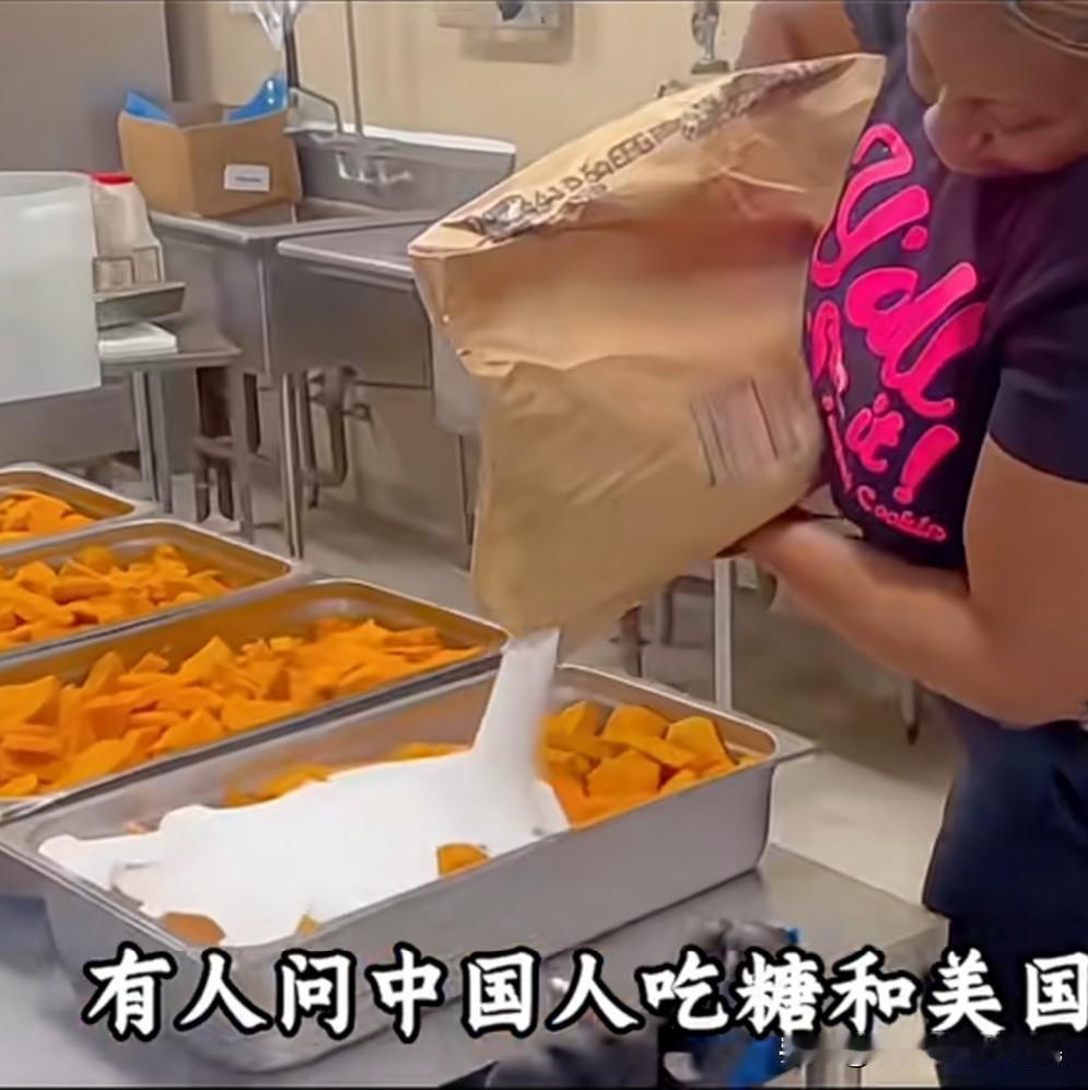 加了这么多糖,不要说吃了 就是看着都要得糖尿病了,血糖呈直线上升。美国饮品店制作一杯冰咖啡,加了半杯糖,还要加好多糖浆,加冰块🧊,最后倒入咖啡液,这就制作完成了,妈呀,简直糖度爆表! 还有制作甜品🍮,红薯上面加大量的白砂糖,不够甜,还要加巧克力粉和黄油🧈。 所以有些人感觉美国的空气是甜的,可能也有这个原因吧[捂脸]。也怪不得他们衰老得很快,原来是糖化反应。