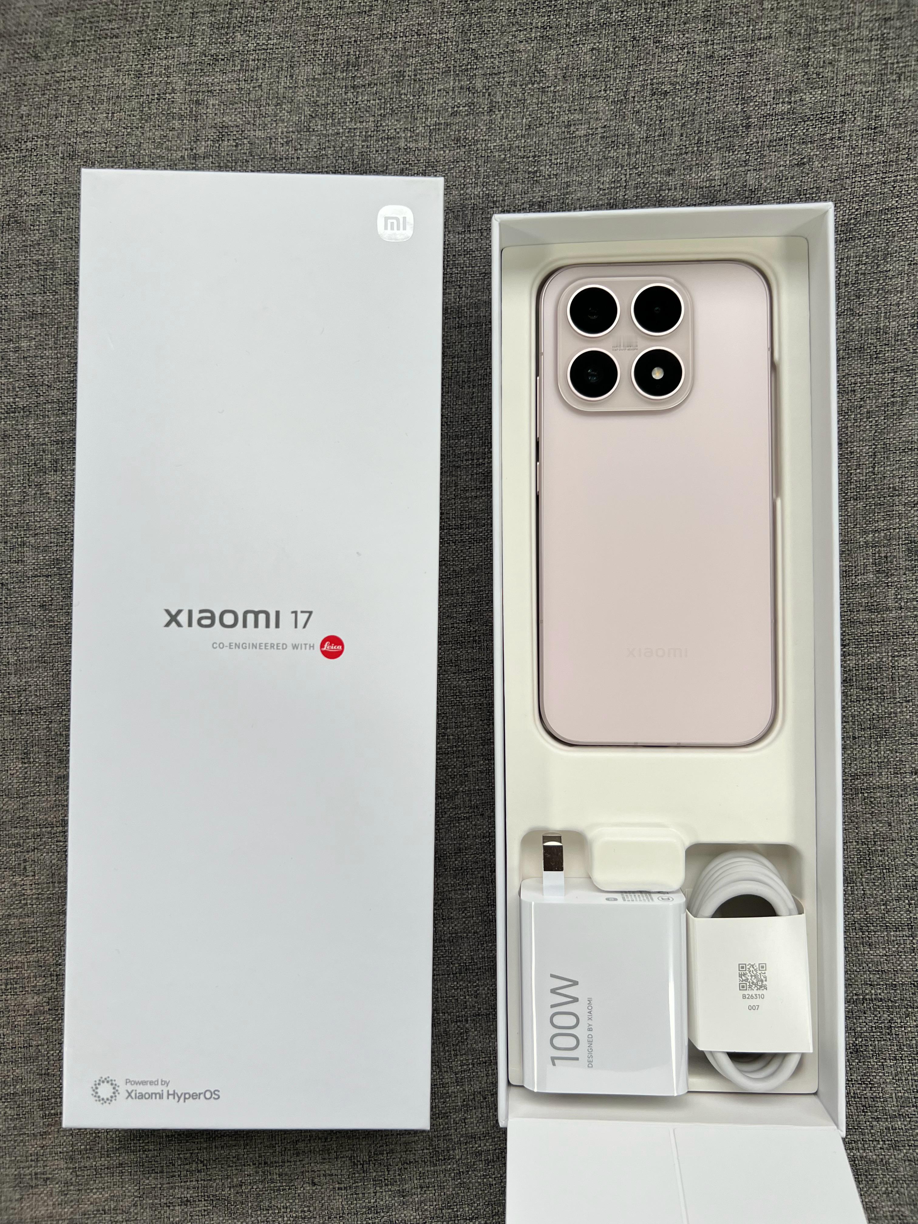小米17 12+256 雪山粉,99新,盒子配件全套,(带365天只换不修+2年碎屏保至2027-10-04),全国联保至2026-09-30,3599