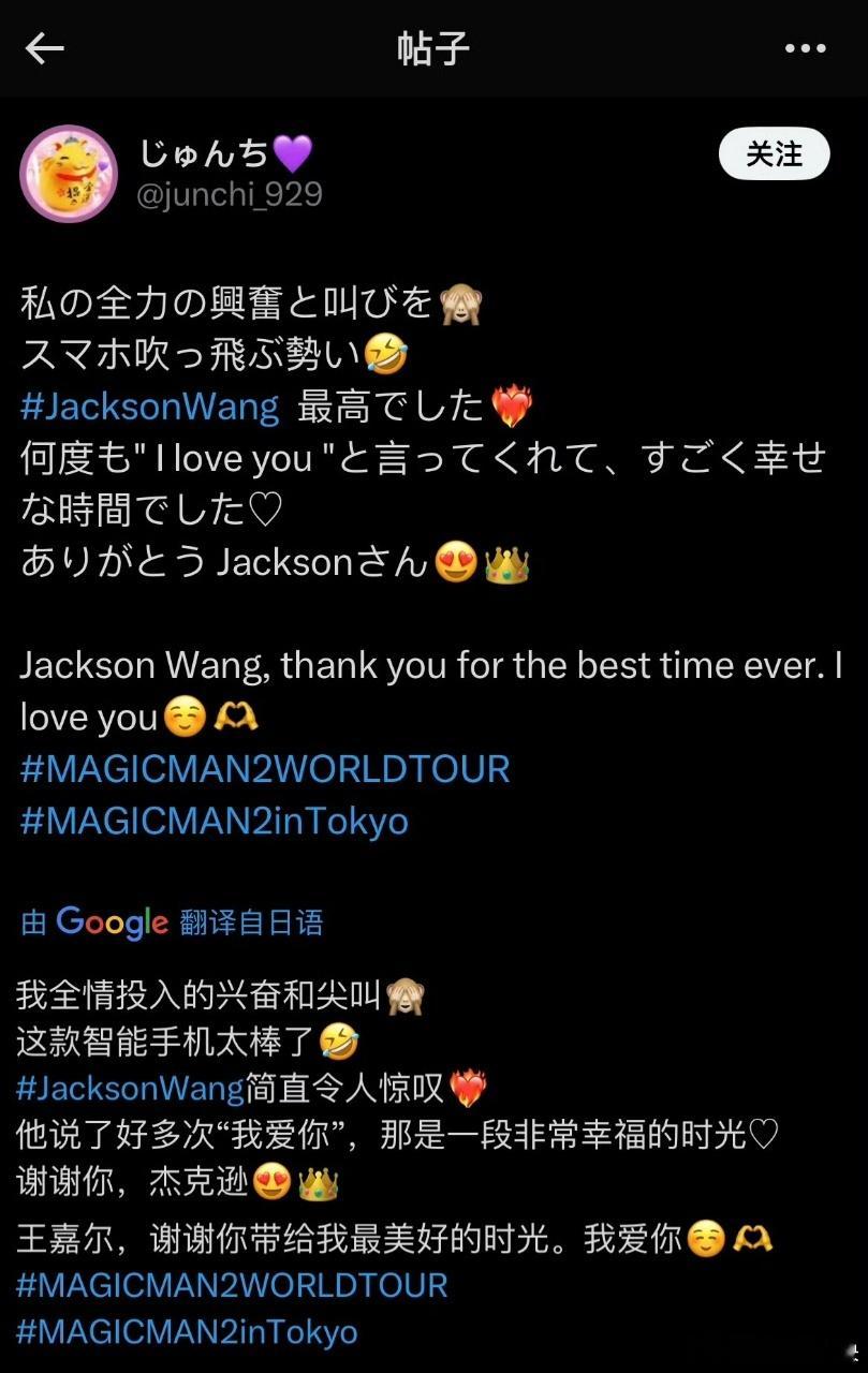 王嘉尔东京演唱会引名流圈热捧 昨晚王嘉尔东京演唱会,半个日本名流圈都来打卡了,现场视频里那超嗨的氛围简直绝了,外网社媒被JACKSON刷屏全是好评,after party也延续了这股热潮,后续场次快安排!