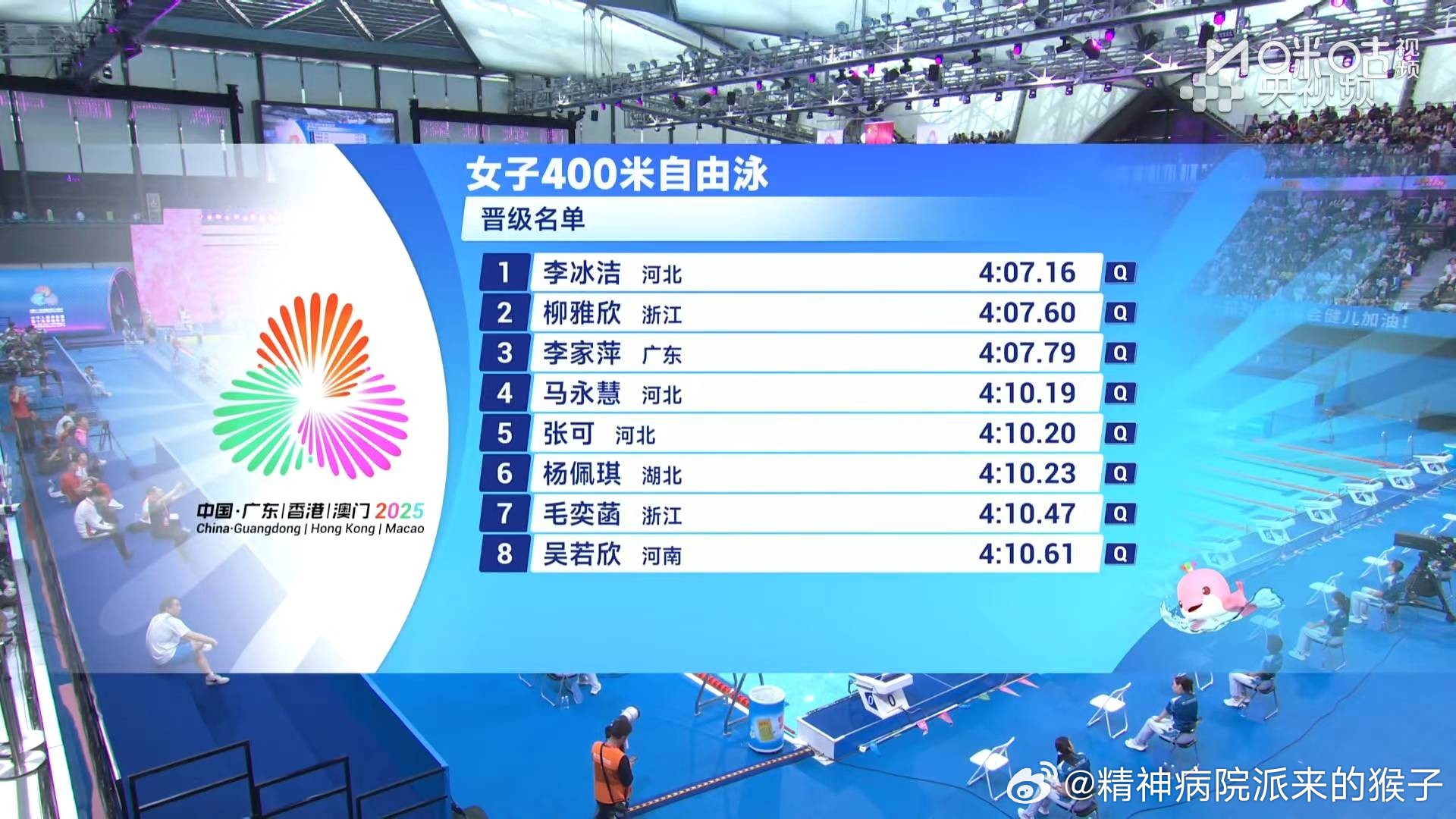 2025年第十五届全运会游泳女子400米自由泳预赛: