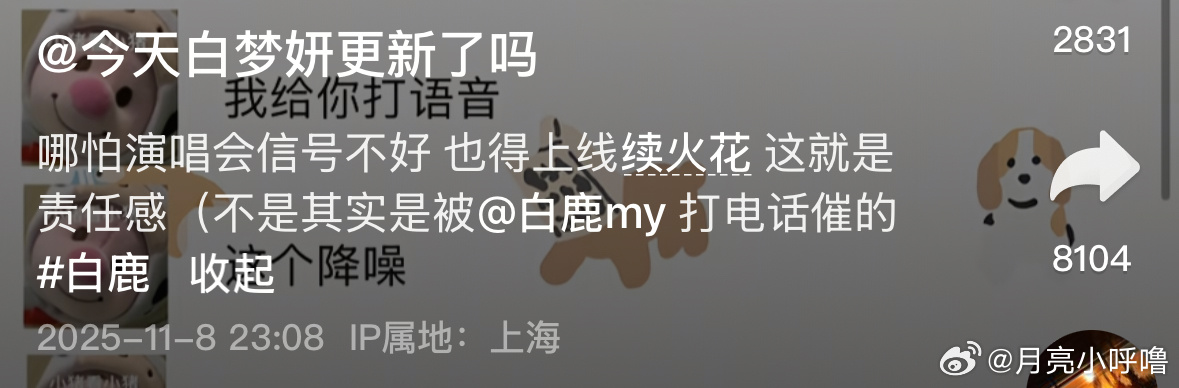 白鹿的好闺蜜呵呵哪怕是在信号不好的演唱会上也接电话上线续火花 看完演唱会还发个🫘分享 你们一鹿呵护甜成这样!