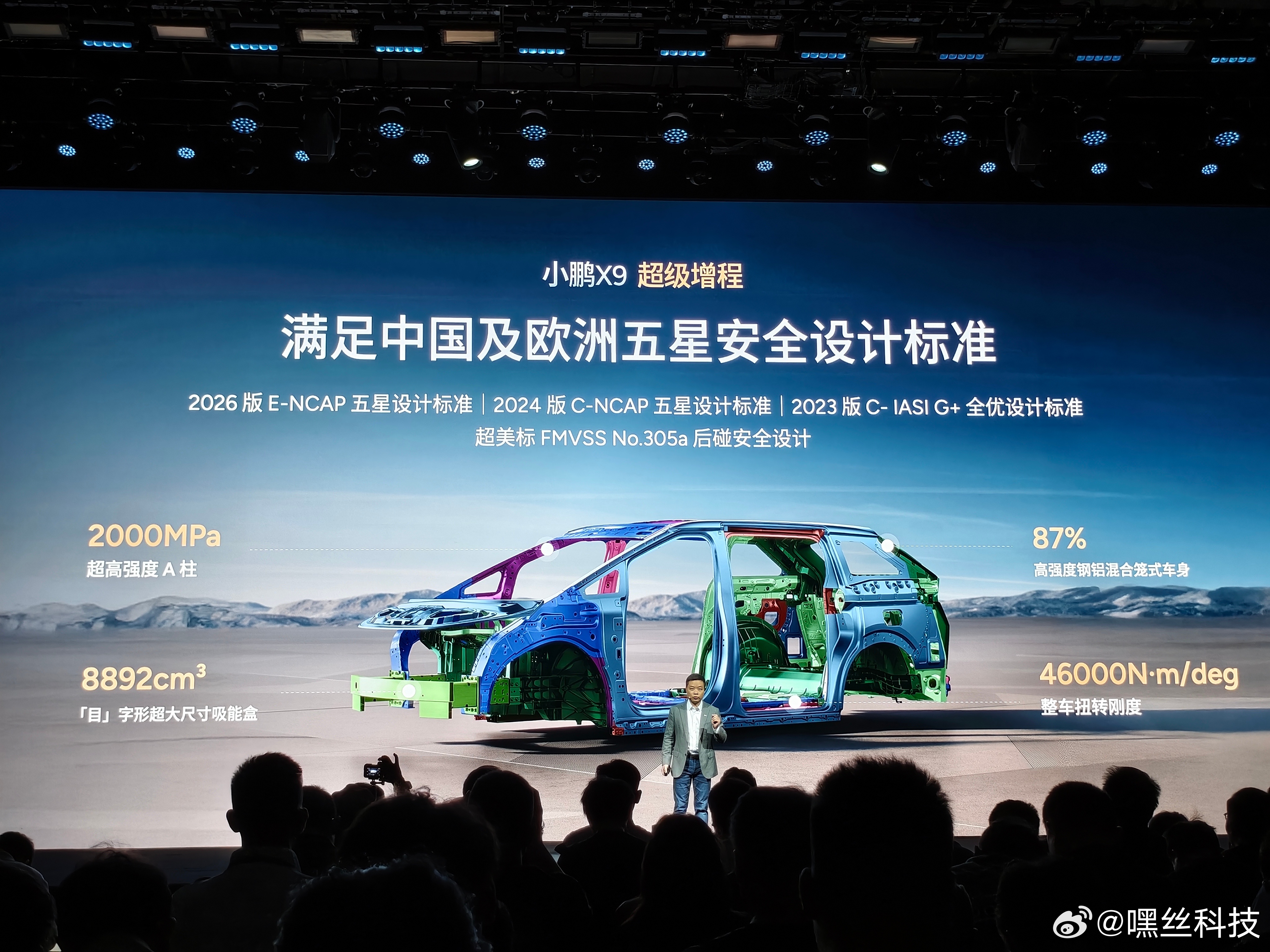 以1602公里的综合续航、452公里的纯电续航刷新全球同级纪录。电池使用安全性更好的磷酸铁锂大电池,支持5C+800V超充倍率,使用体验接近纯电车型。另一边,小鹏X9超级增程搭载第三代1.5T增程发动机,加强静谧性设计,罕见的支持加92号油,太实用了,搭配大油箱实现1602公里综合续航,完全没有续航焦虑。系统集成11源热泵智能回收系统,既能给设备降温,回收热量还能降低冬季能耗,实现16.5kWh/100km综合电耗,低于同尺寸的增程车型,降低日常使用成本。另外小鹏X9首发三排电动三折叠,随时调整空间利用,载人载物都可以灵活应对,满足多种出游场景。小鹏X9是一款经受检验的车型,采用高强度钢铝混合笼式车身保障乘员安全;全腔空气悬架与主动式后轮转向、零重力座椅带来更平稳的乘坐体验;21英寸HUD与影院级音响系统也是高端车的配置。小鹏X9超级增程太强了小鹏X9超级增程今晚预售