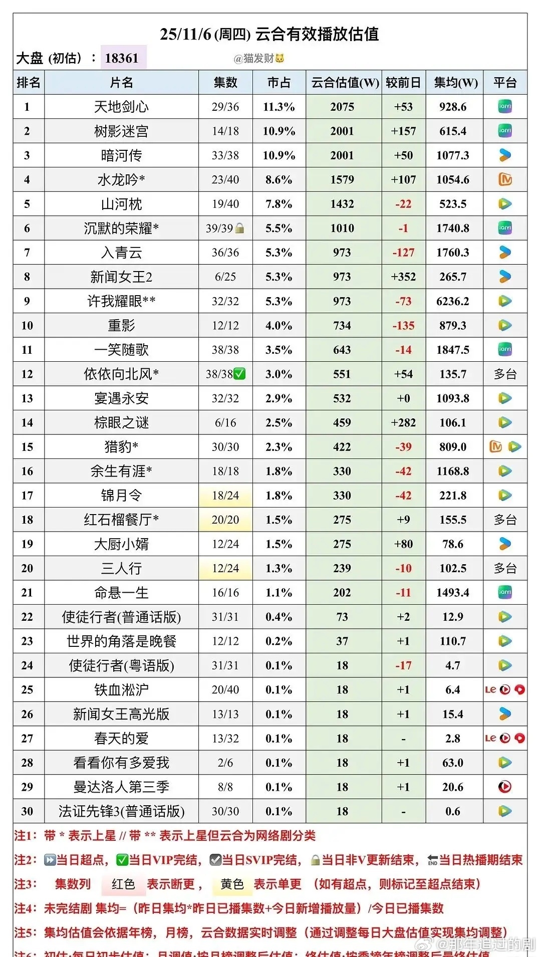 11.6电视剧云合播放量估值