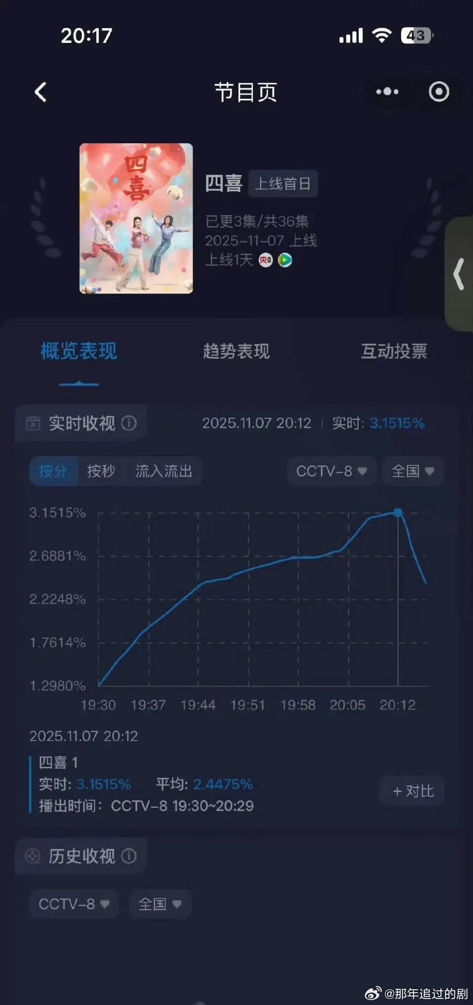 四喜37分钟收视率破3谁还没被《四喜》的收视成绩惊到?央八选剧又开挂!《四喜》