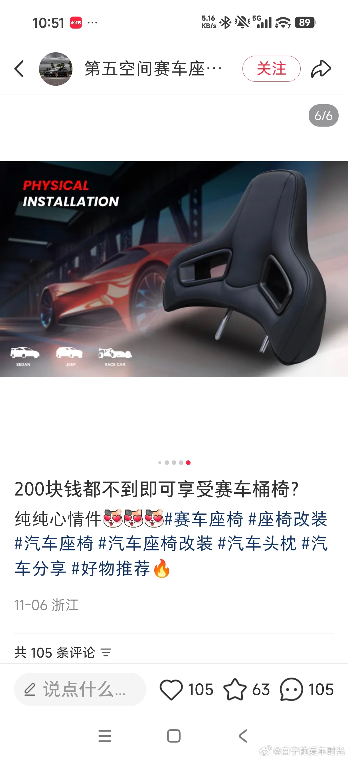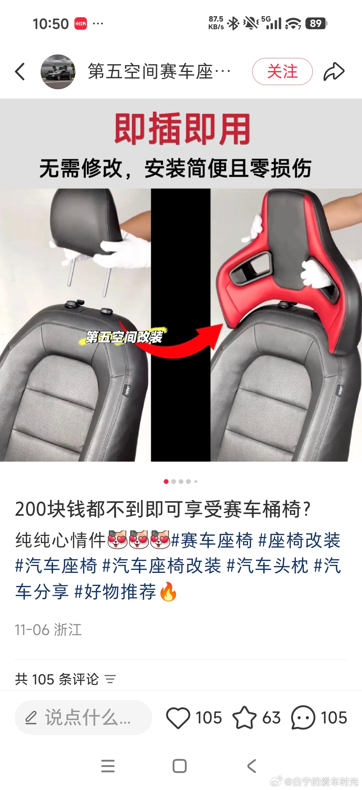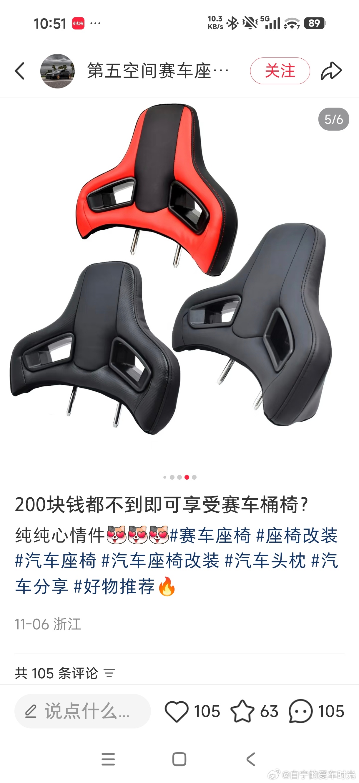 后市场改装件再一次刷新的我的想象力边界!这猛一看很妙啊!仔细一想,首先能适合的座椅就很有限,而且这比原来的头枕高出那么多,直接顶车顶了……