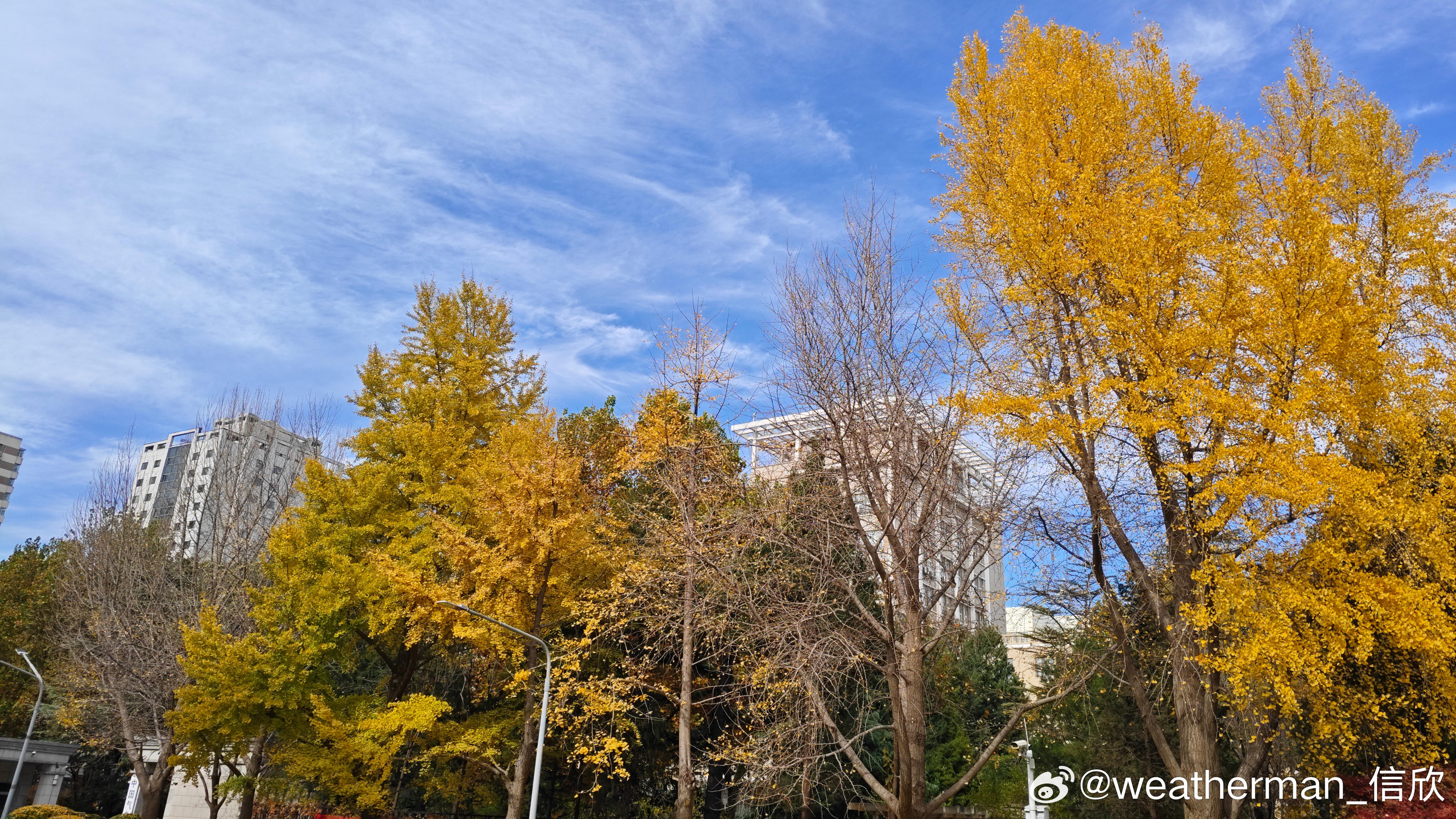 经过11月7日的降雨和11月9日的风,中国气象局里面的银杏树,有的已经秃了。周日(16日)还有一场大风,估计银杏就全秃了。图1为11月6日,图2为11月10日。
