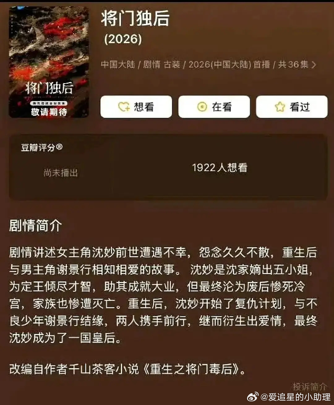 现在又在传《将门毒后》是赵今麦王鹤棣?