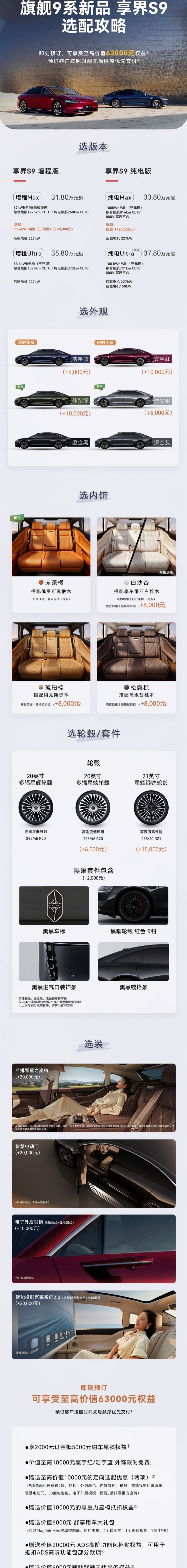 目前华为商城官网已公布新款享界 S9 的选配内容,整理如下: