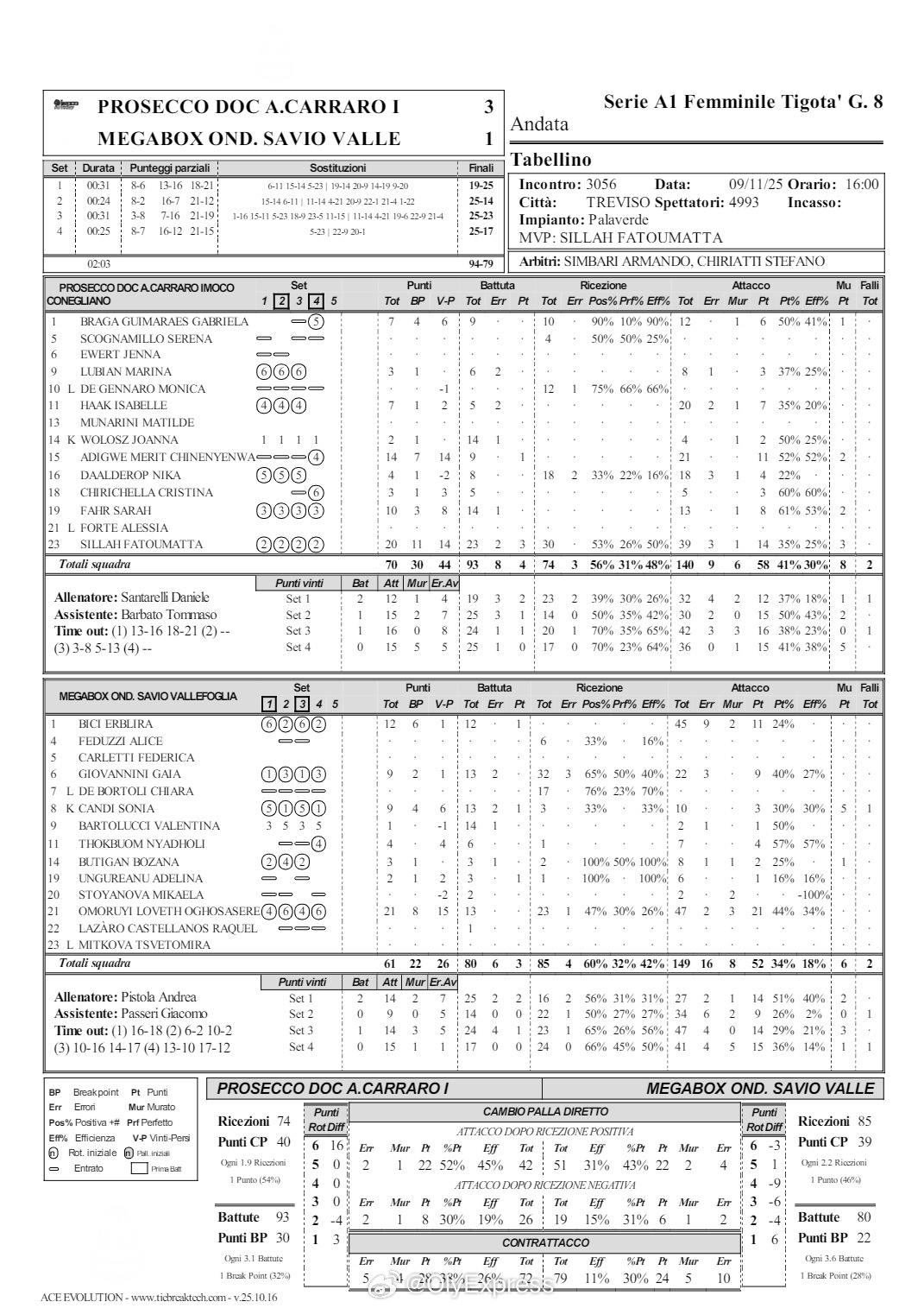 【意甲女排科内3-1瓦莱福里亚取第九胜 西拉MVP】国际排坛战报速递 11月9日特雷维索,意甲女排第八轮,科内利亚诺主场3-1(19-25/25-14/25-23/25-17)击败瓦莱福里亚,取得九连胜。西拉20分首次荣膺MVP、阿迪维14分、法尔10分、加比和哈克各7分,奥莫鲁伊21分、比希12分。