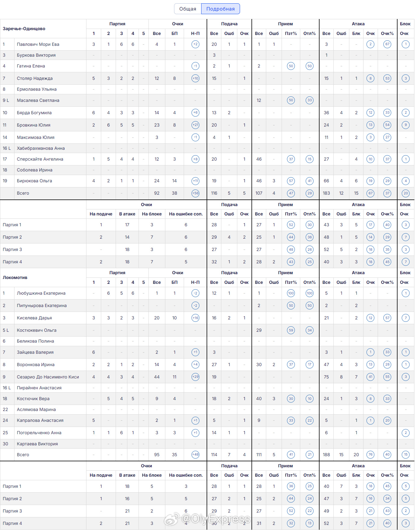 【俄超女排四局激战162分钟 基西44分火车头仍1-3奥金索沃】国际排坛战报速递 11月9日,俄超女排第七轮加里宁格勒火车头客场挑战奥金索沃的比赛进行得异常惨烈,双方四局比赛激战了162分钟,每局比赛均打到加分,火车头以1-3(27-29/27-29/29-27/30-32)惜败,4胜3负13分排名联赛第四,奥金索沃6胜1负18分位列次席。火车头巴西外援基西砍下全场最高的44分(75扣41中3拦)、基塞列娃20分、临时签约的沃隆科娃14分,比尔尤科娃24分、布罗夫金娜23分。