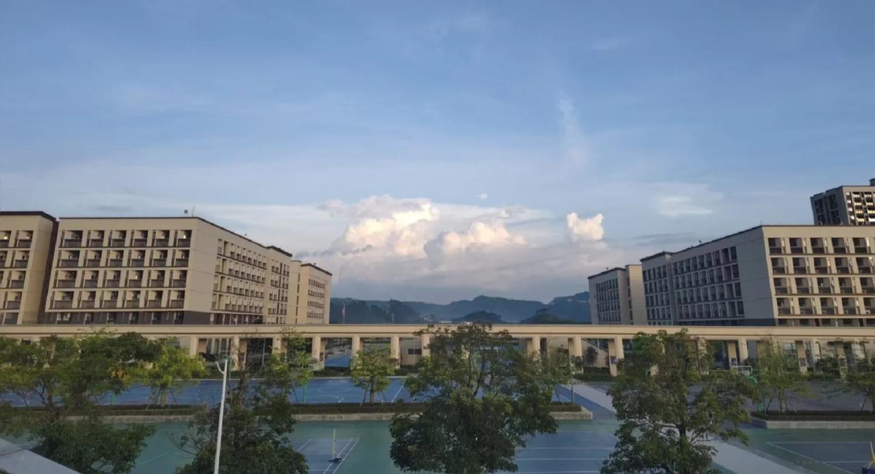 北方人踏入玉林新世纪高级中学的首个学期 北方人踏入玉林新世纪高级中学的首个学期, 由衷领悟这方天地的文脉。 这座校园更像是立体的《诗经》, 建筑是物化的修辞学, 在这里教书的第一课, 是学会用眼睛背诵天地文章。 山峦在远处做着静默的批注。 学校建筑带来的最动人的修辞, 是让几何线条都学会温柔让步。 北方的天际线过于棱角分明, 让我未曾想过, 建筑竟能与远山蓝天相拥得如许圆融。 这里的云絮好像永远含着水墨氤氲, 昔日黑板讲授的“人在画中游”, 终在廊栏与远山间获得印证。 最喜欢这些孪生般的教学楼, 像极了律诗里工整的颔联。 看着穿行的人群在暖调光影里重复着孔子周游的寓言, 这样连通的教学楼用敞开的胸怀说着: 教育本该是通风的长廊,而非封闭的高墙。 待霞光拂过喀斯特山峦的纸镇, 晚霞便晕作最磅礴的作文底色, 原来最美的家国情怀, 正藏在与国旗共度的每个黄昏。 如果你问我, 在玉林新世纪高级中学教书是什么体验? 我想, 这里重新定义了我对“高中校园”的想象。 与天地共学、与家国同频, 它更像是一座会呼吸的知识殿堂。 最美高中校园 玉林新世纪高级中学 美丽校园等你来 我镜头里的校园