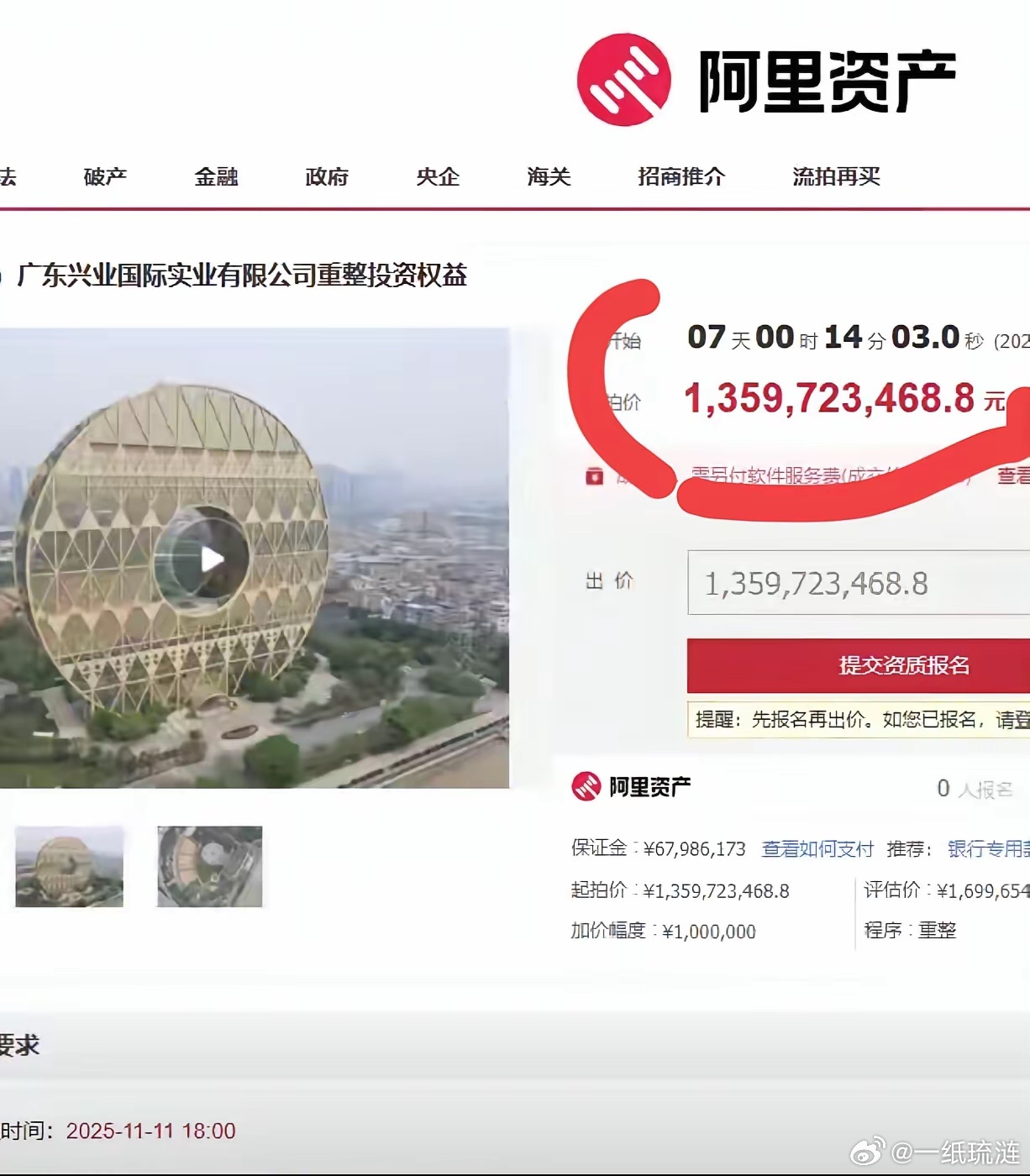 广州圆第三次拍卖,这次拍卖13.6亿起拍,这一次能不能拍出去就难说了