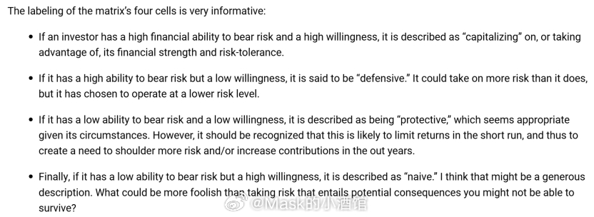 当然了,马克斯也承认,涨跌对有些人来说确实重要。比如养老金,账上的钱少了,赞助的企业或者政府就得多掏钱补上,这会影响他们的财务计划。