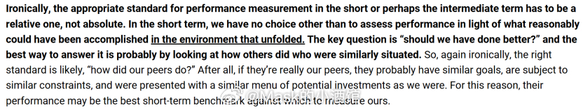 所以短期看表现,只能跟别人比。看看同行赚了多少,看看你在当时的情况下是不是尽力了。