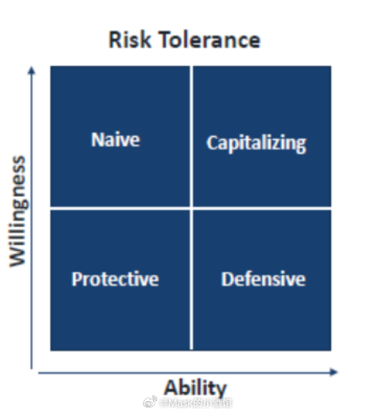 怎么分的呢?就看两点,一是你有多少钱可以亏(横轴),二是你敢不敢亏(纵轴)。