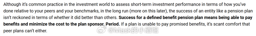 就是他们不在乎别的养老金赚了多少,只在乎自己能不能按时给退休的人发钱,开支能不能尽量少。