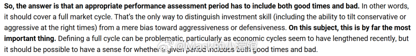 评价一个人做得好不好,时间得够长,至少得经历一次牛市一次熊市。