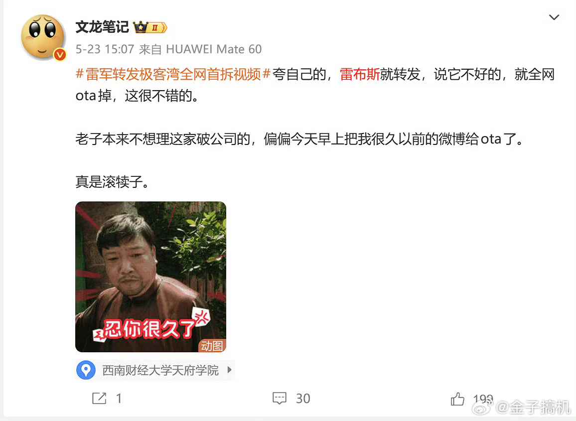 喜大普奔,小米又起诉了一个小黑子,12月初开庭…话说,有没有发现,这些小黑子的智慧容量大都差不多?总会说一些让人难绷的话,比如这位:我几个月没发这家东西了,别闹笑话了好么?只要你发过攻击小米的,那么小米法务肯定会取证,而接下来就是小米走维权诉讼的流程了,几个月已经算是给你加速了,这下懂了吗?