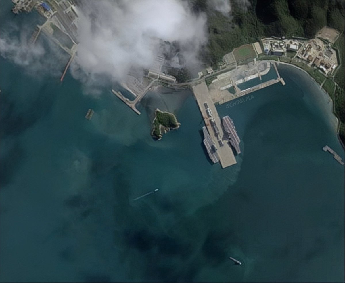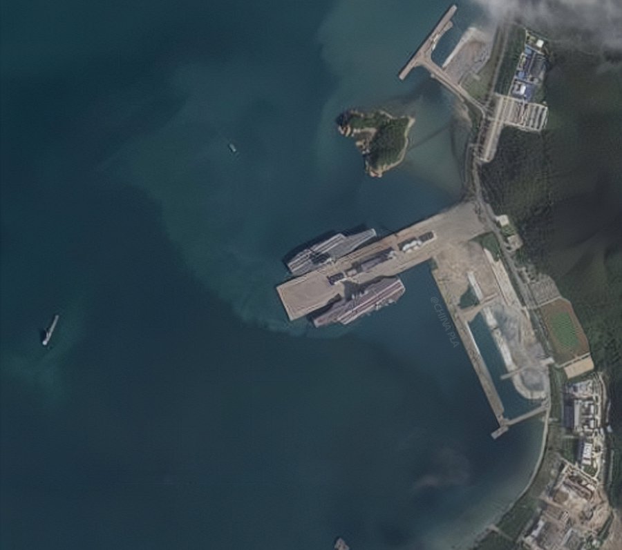 中国海军第三艘航空母舰福建号(CV-18)已顺利入列,卫星图看甲板上仍有舰载机。