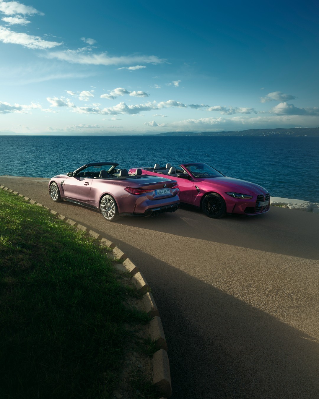 M4敞篷的BMW Individual 特殊车漆——丝绒兰 II金属漆Velvet Orchid II metallic 与红宝石星Ruby Star (NEO),适合霹雳娇娃女车手[哇]bmwsky[超话]宝马M4[超话]mpower