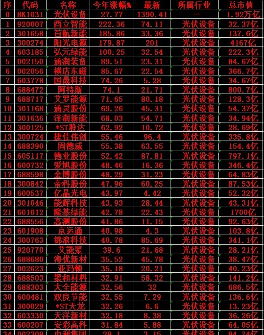 弘元绿能:今年涨幅 +100.25%,总市值 222.3亿元