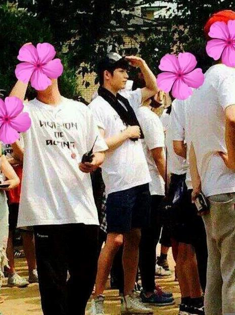 张天爱跟素人合影,胯真的好宽,大宅院似的