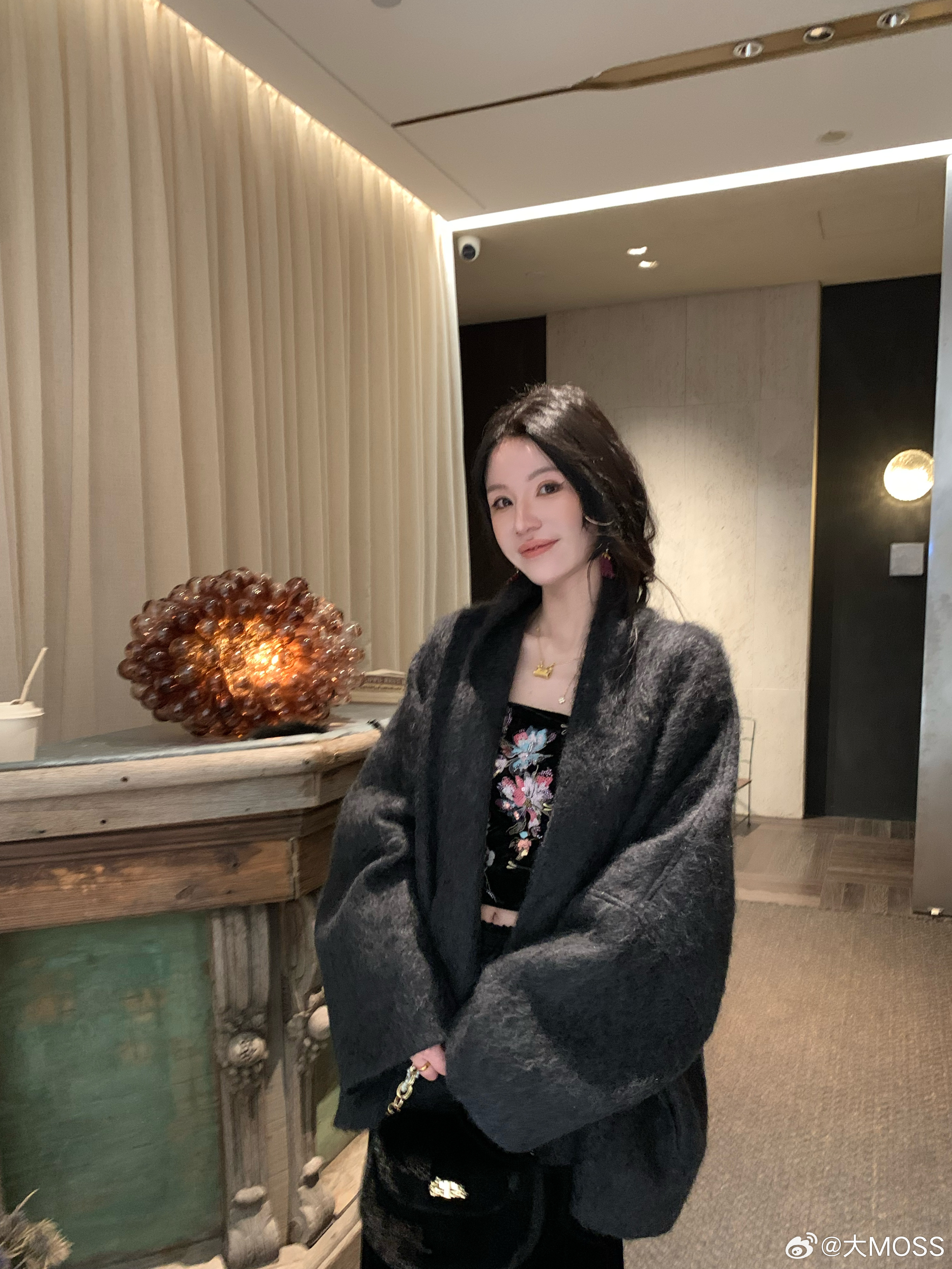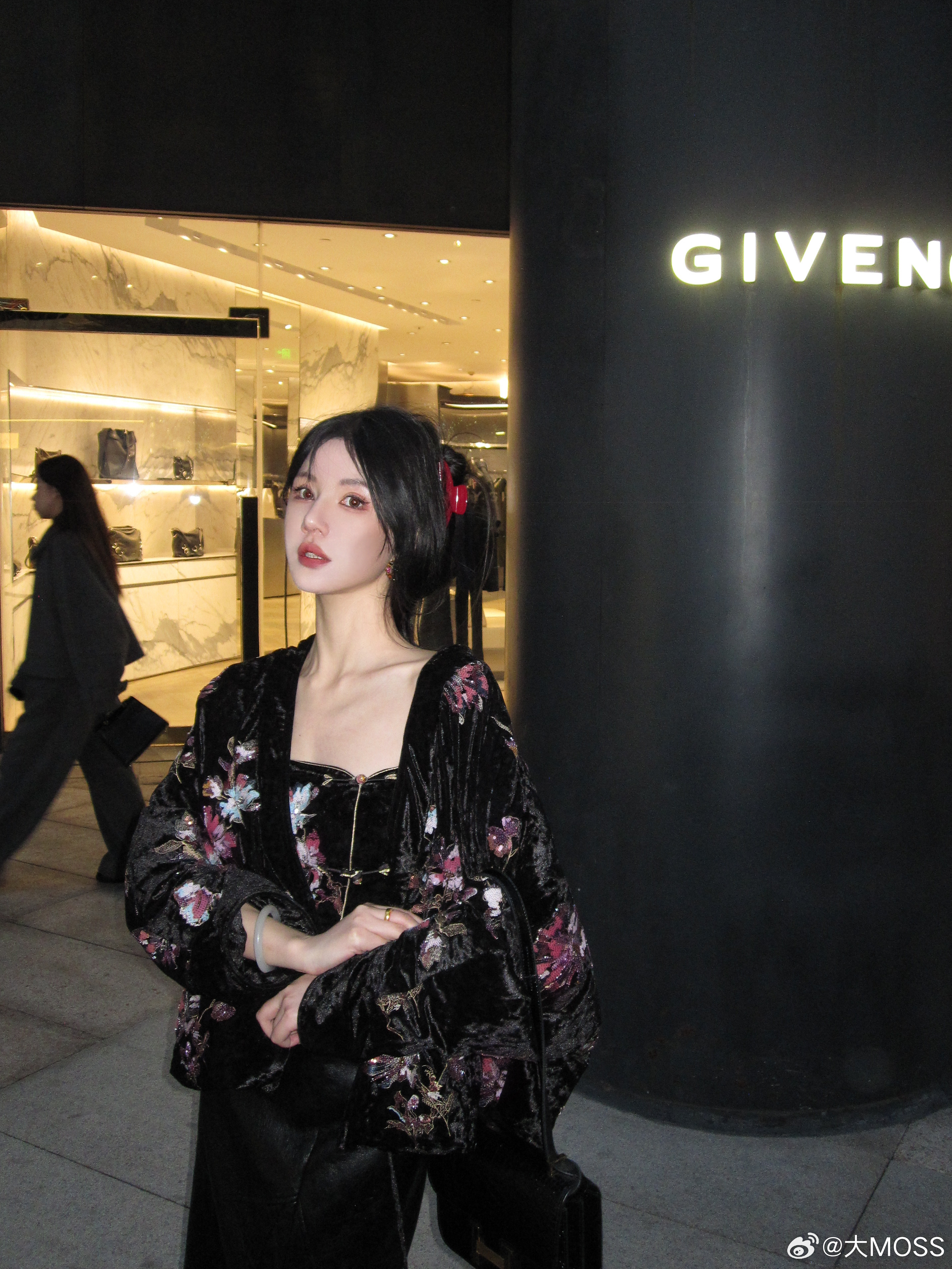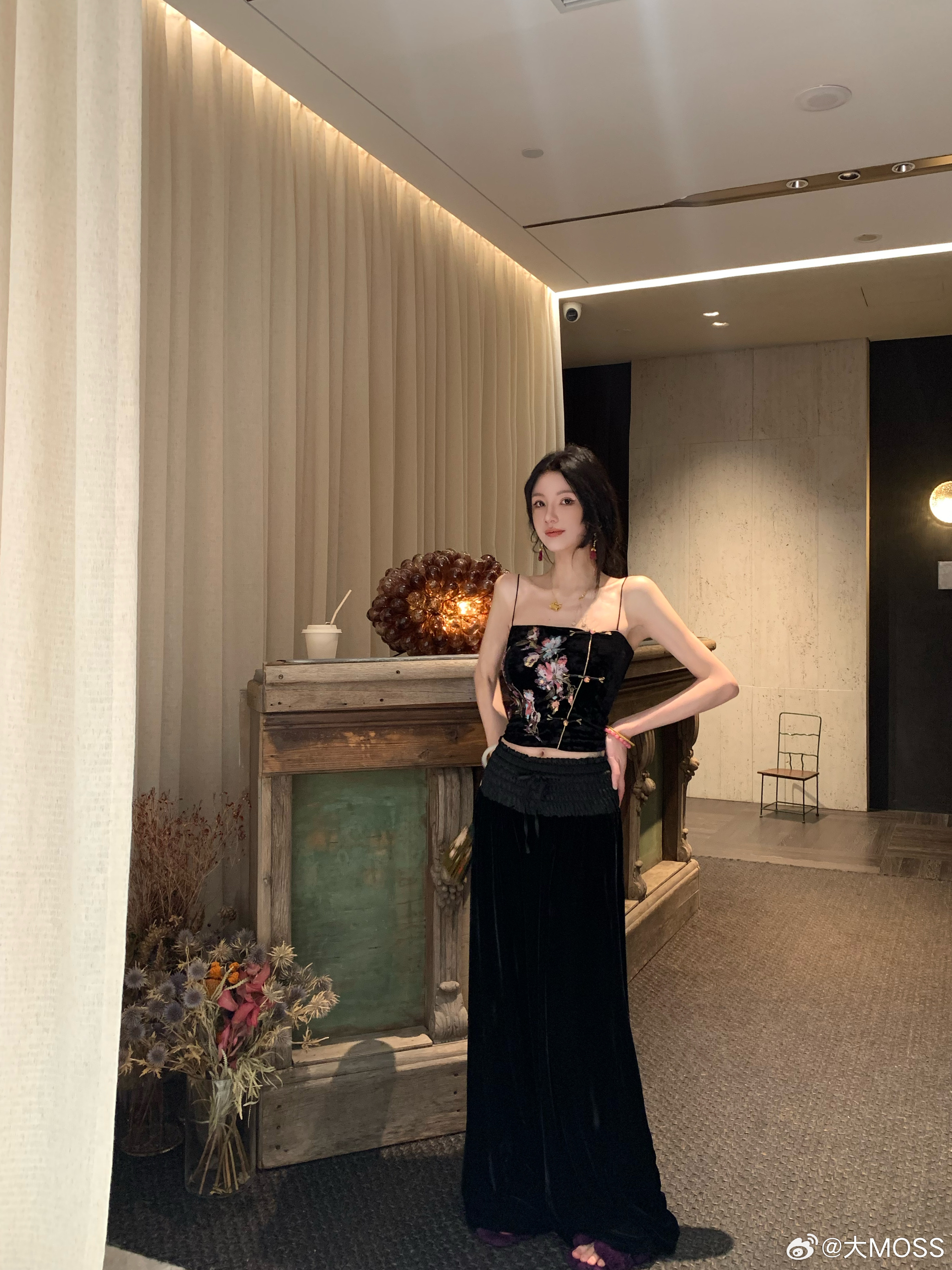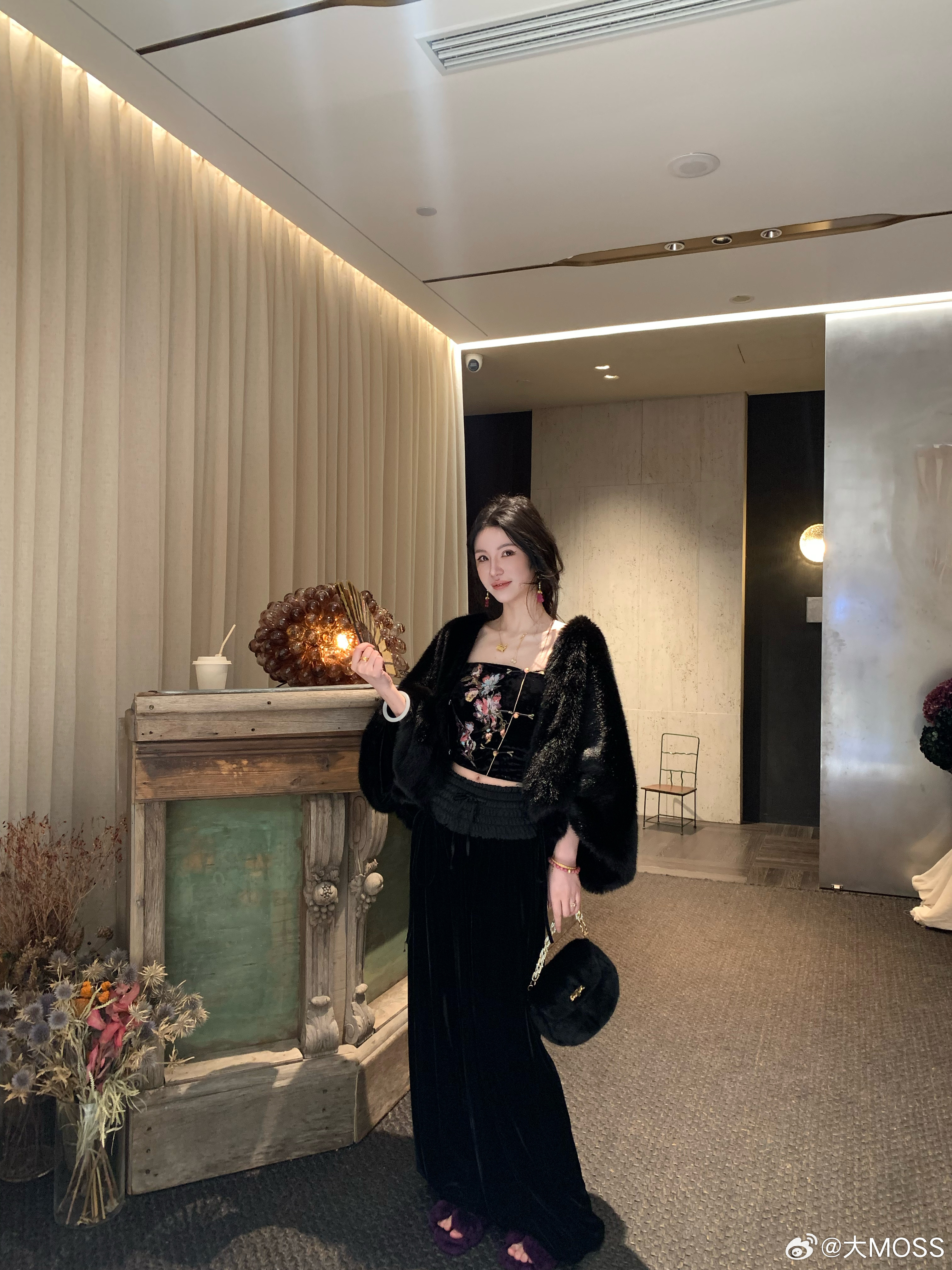采用系带设计,可收可放间尽展穿搭的层次感💡宽松的版型设计十分百搭。烟墨黑枫叶莲珠绣丝绒面料🪡如暗夜丝绒殷神秘雅
