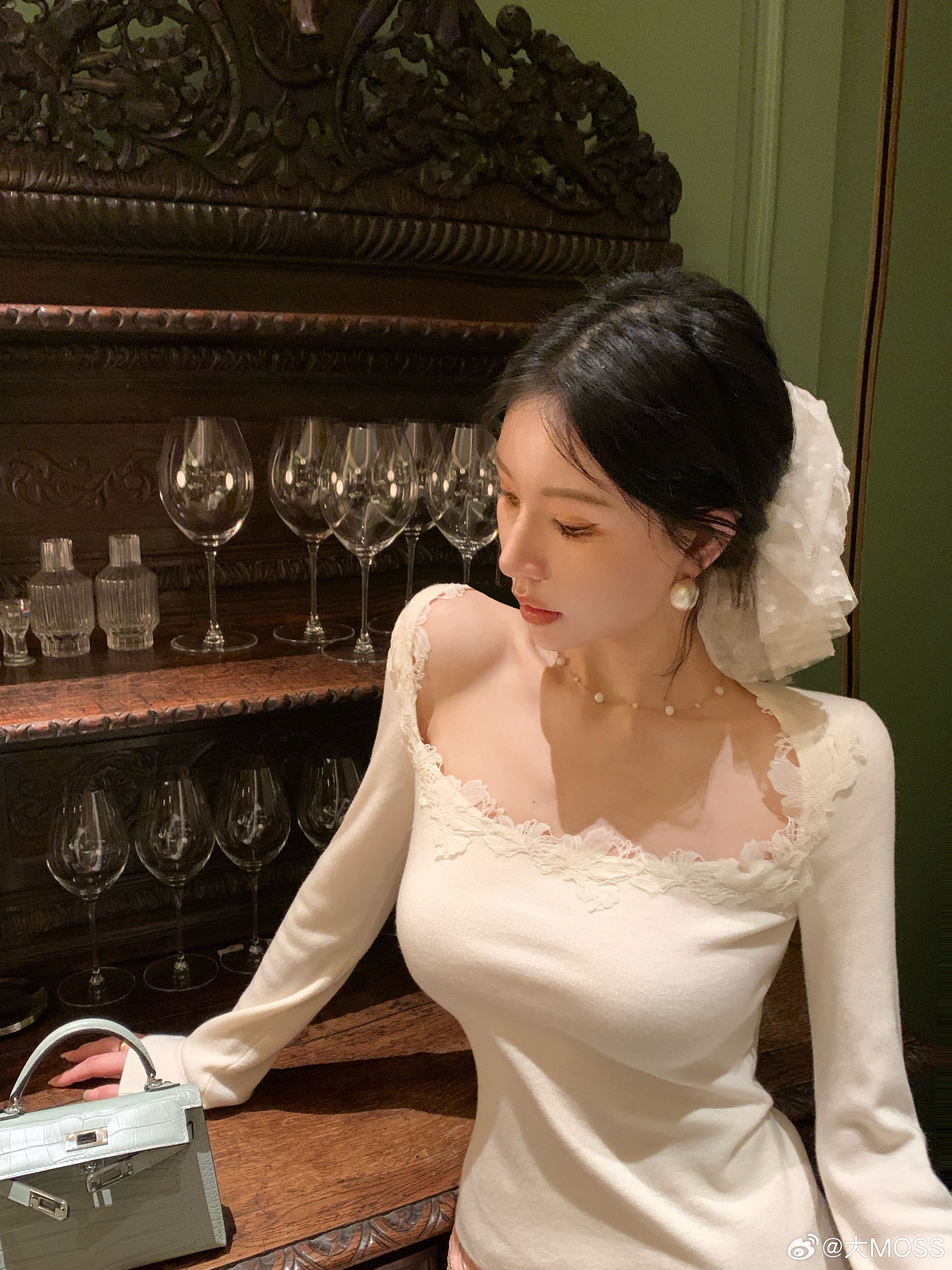 领口蕾丝拼接,为简约的羊毛上衣注入法式风情的精致感💅🏽选用质感上乘的羊毛面料🐑細腻触感如云絮轻软☁️整体版型慵懒随性,贴合身形却毫无束縛感👍