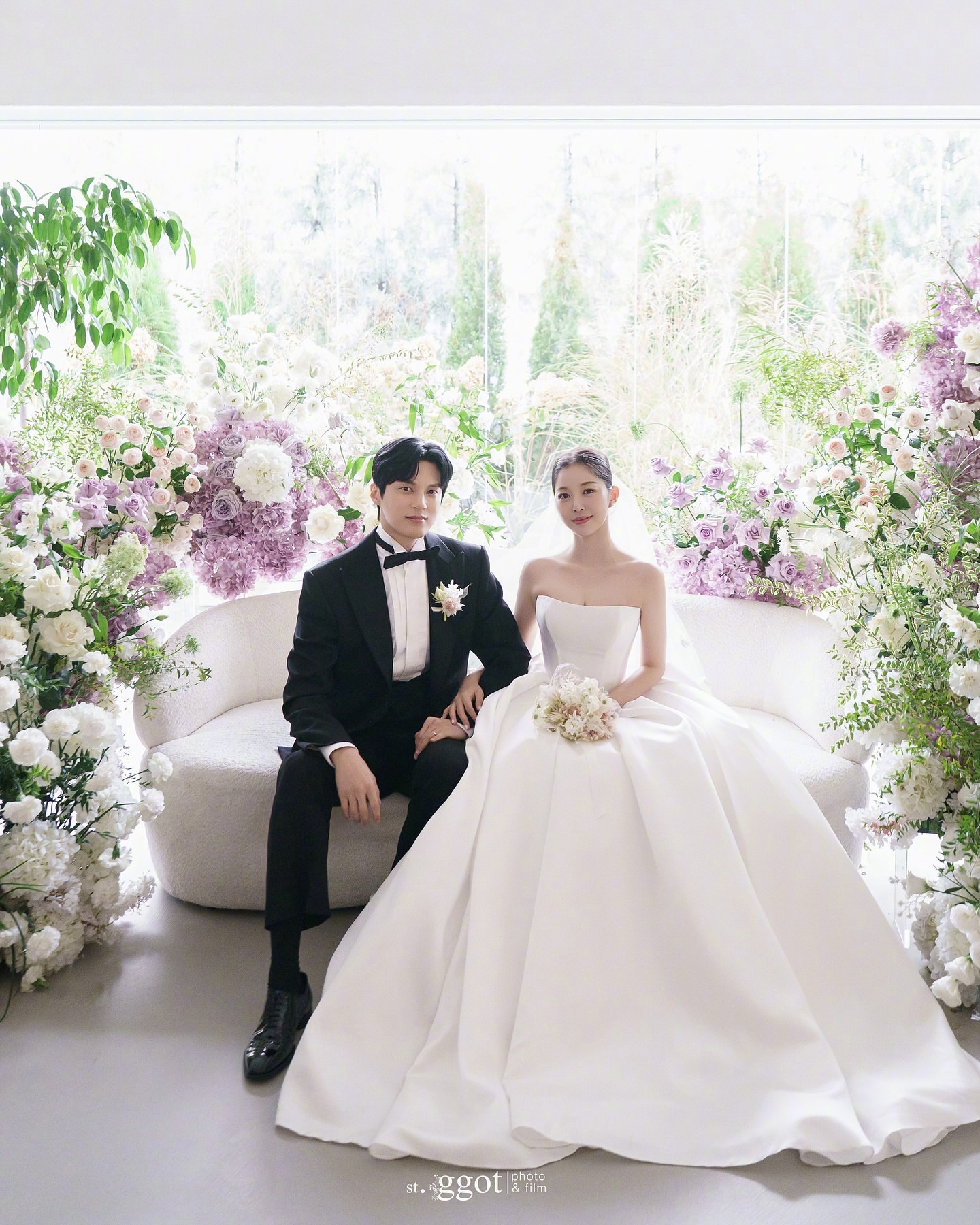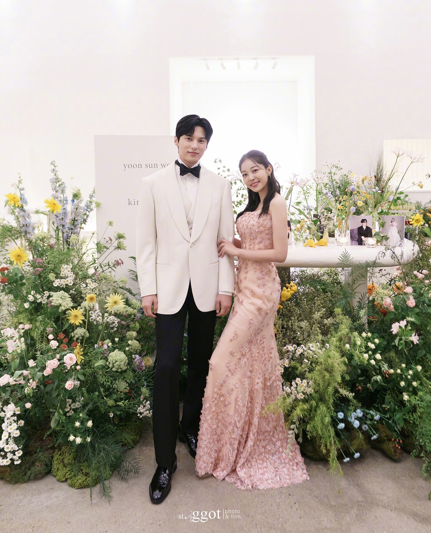 尹善宇金佳恩 婚纱照,两人因合作电视剧《一片丹心蒲公英》结缘,10月举行婚礼[喜