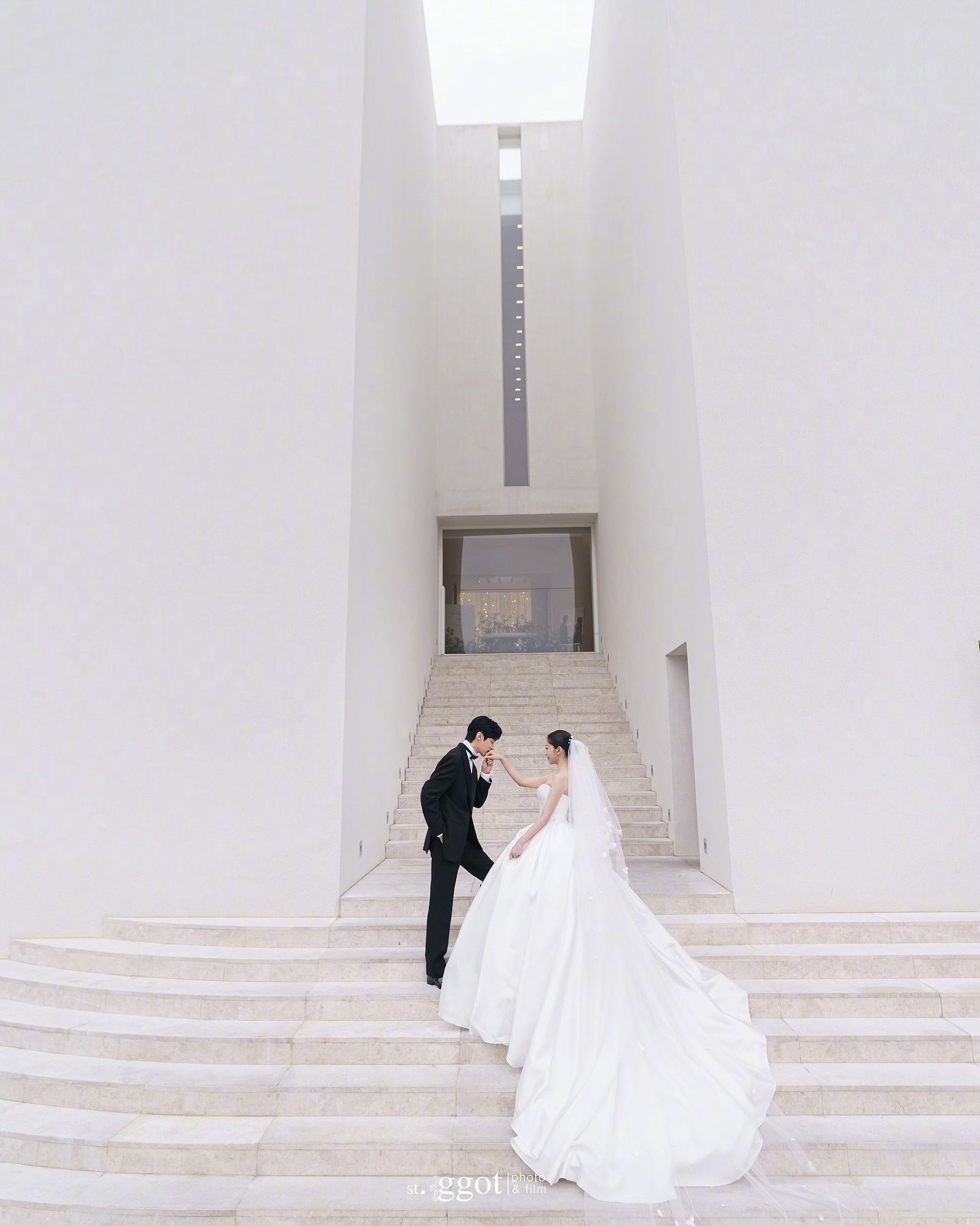 尹善宇金佳恩 婚纱照,两人因合作电视剧《一片丹心蒲公英》结缘,10月举行婚礼[喜]