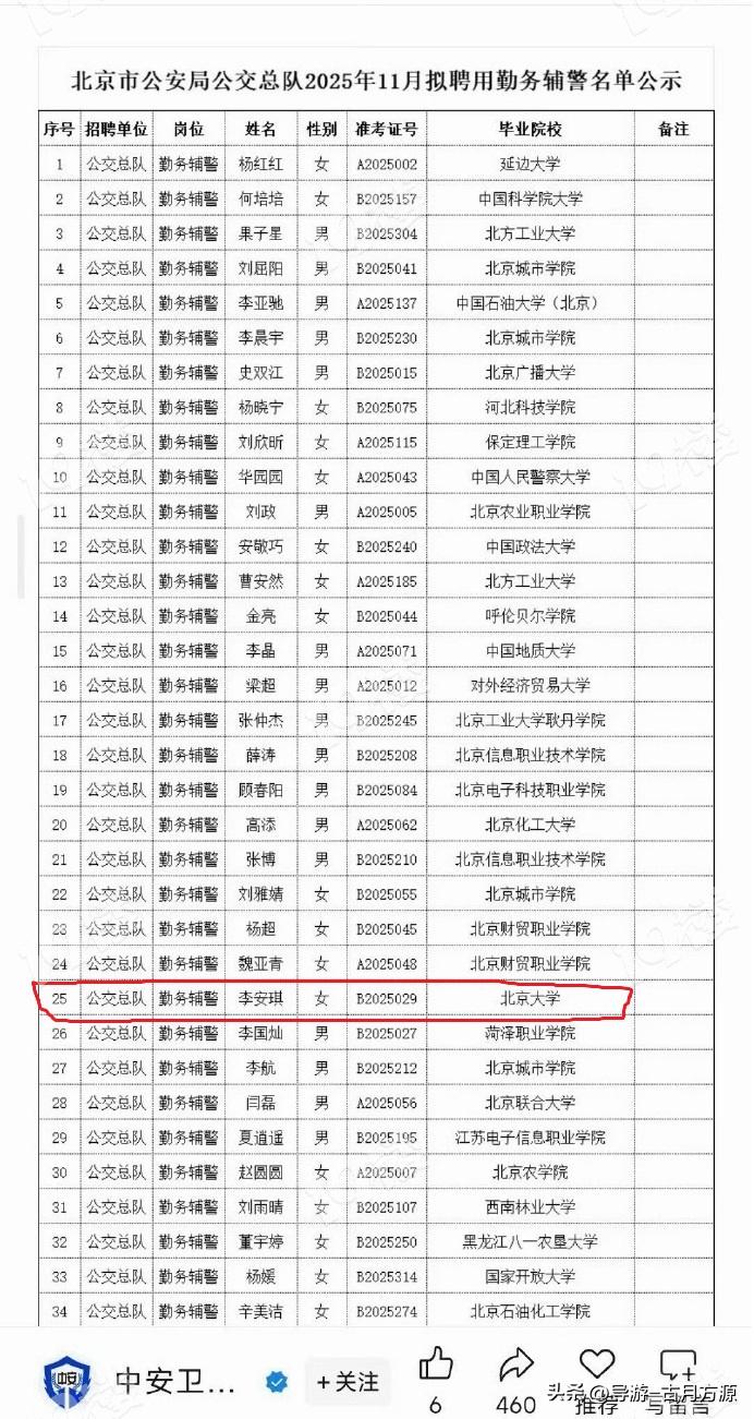 北大毕业当保安/辅警好不好? 这是北京招聘辅警名单录取的一个公开信息,辅警听起来